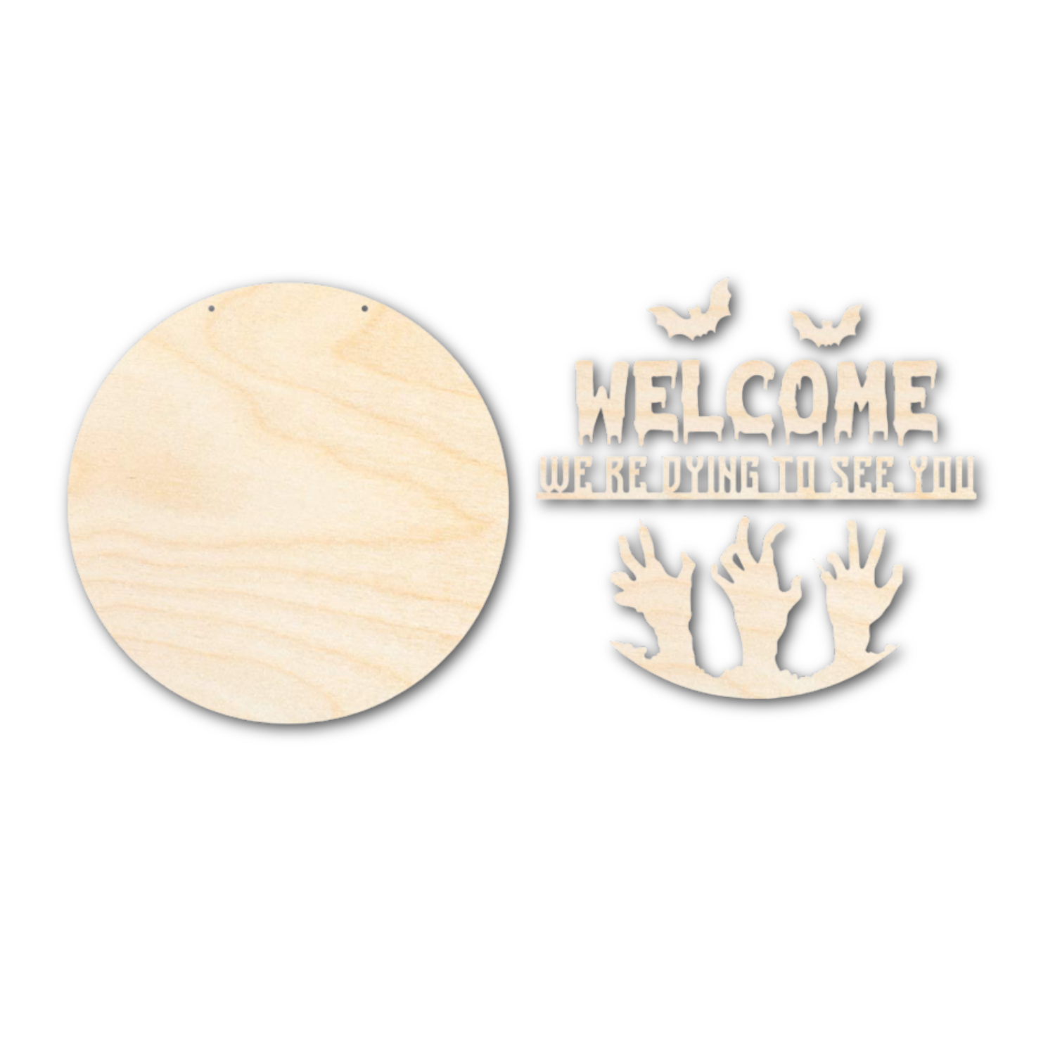 Unfinished Wood Zombie Welcome Door Sign Kit | Wood Craft Cutouts | 1/4" Thick |