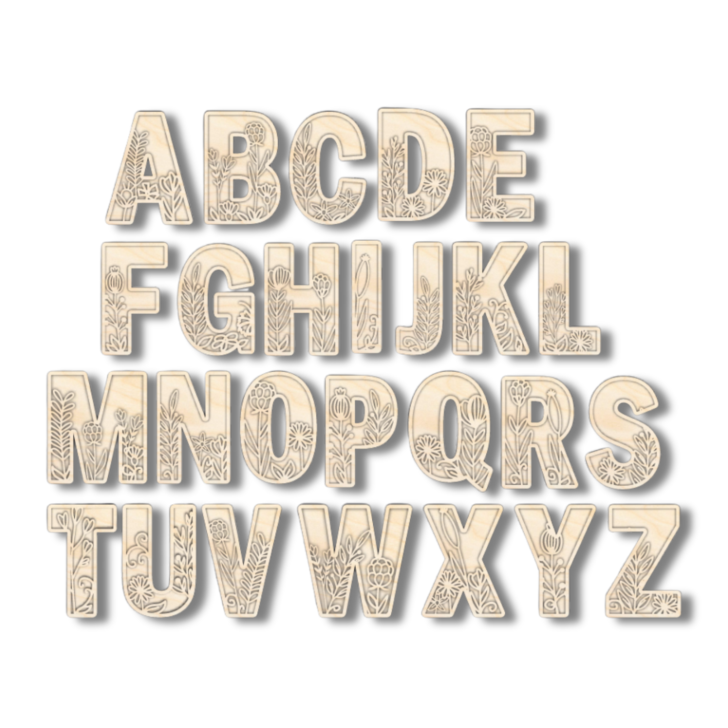 Unfinished Wood Layered Themed Letters | Wild Flowers | A-Z | 2 Piece | up to 24"