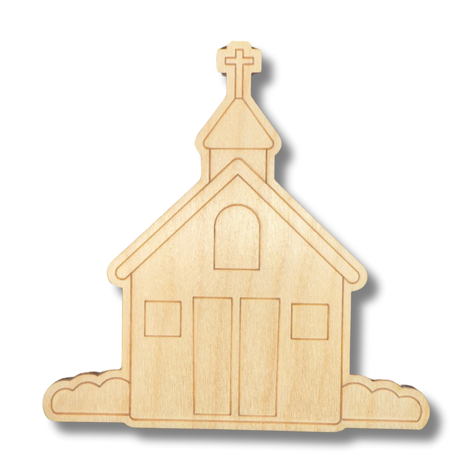 Unfinished Wood Etched Church Shape | Paint By Line Crafts | up to 30" DIY