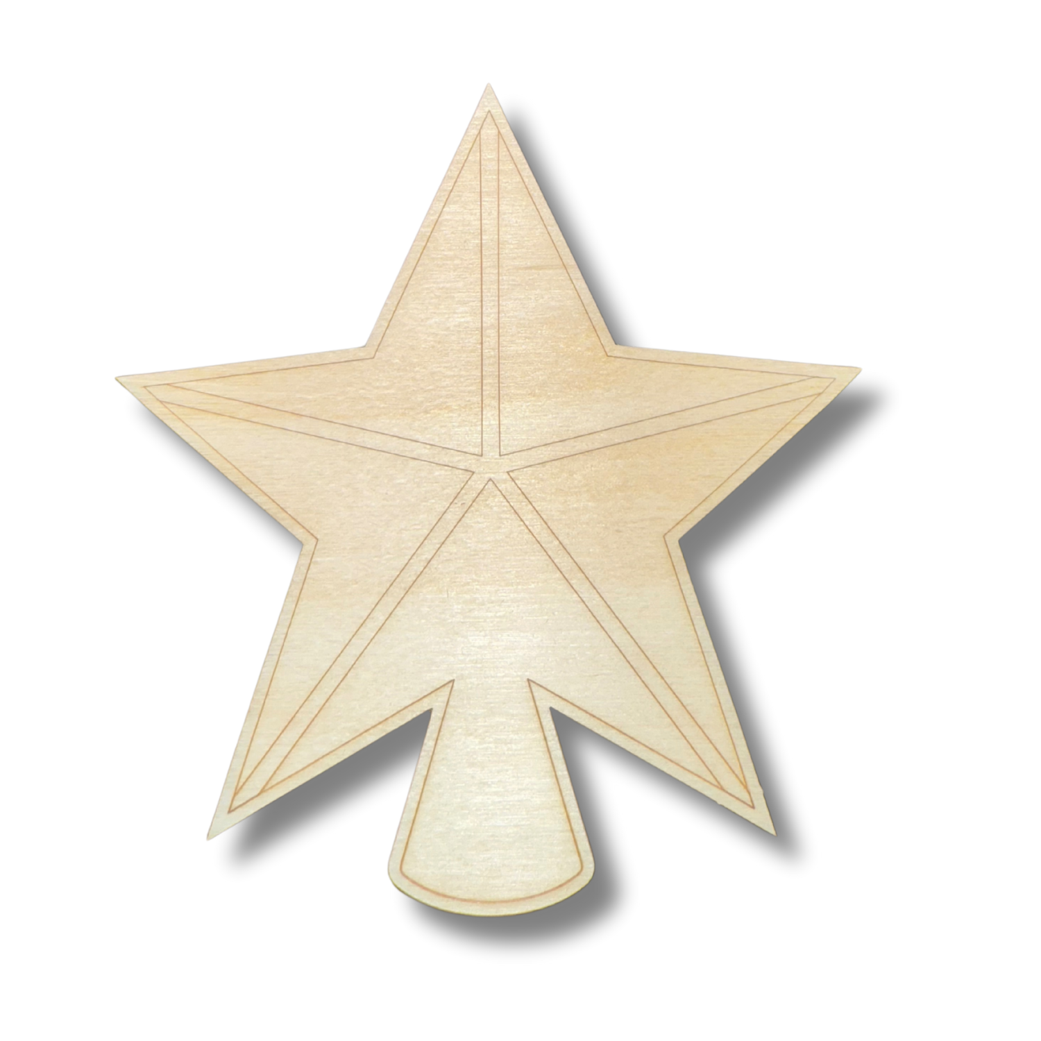 Unfinished Wood Etched Star Tree Topper Shape | Paint By Line Crafts | up to 30" DIY