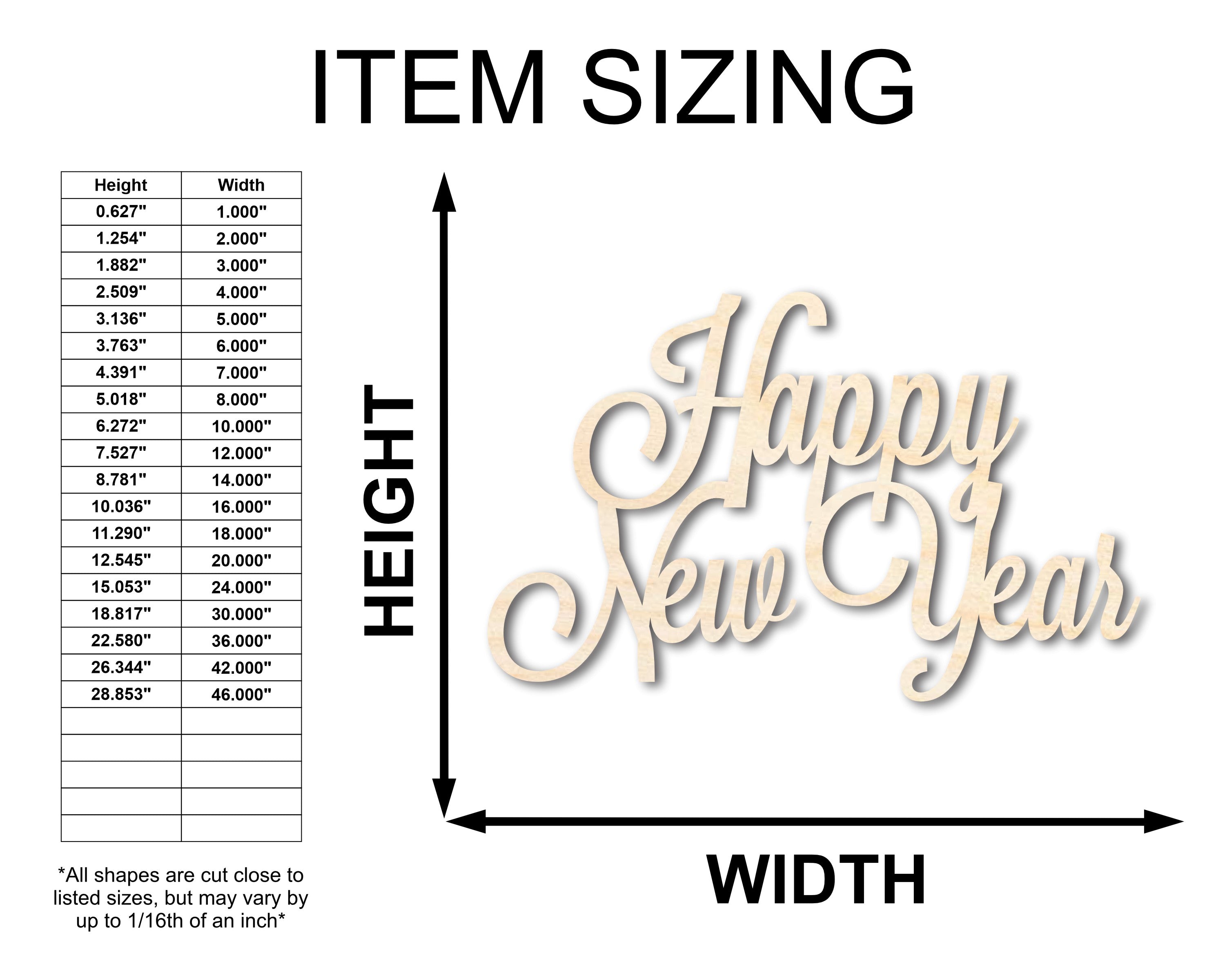 Unfinished Wood Happy New Years Shape - Word Craft - up to 46"