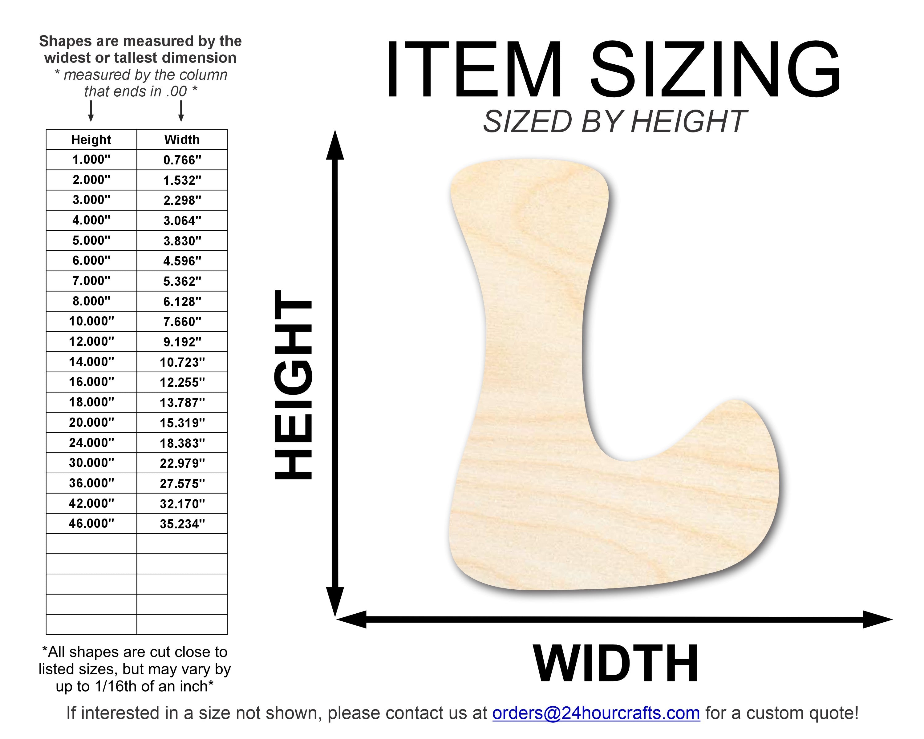 Unfinished Wood Groovy L Font Shape | DIY Craft Cutout | up to 46" DIY