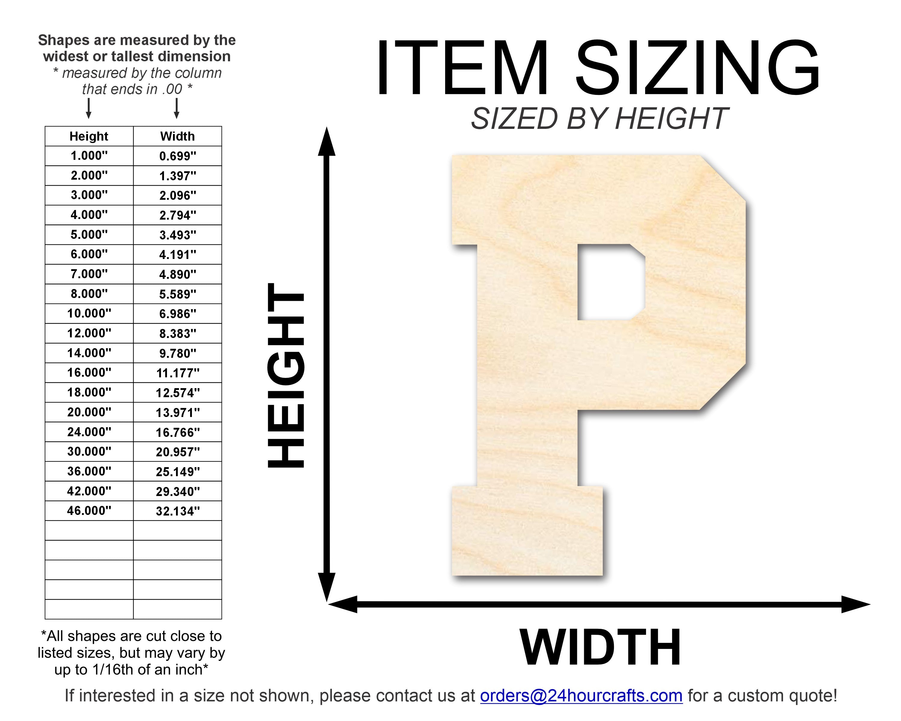 Unfinished Wood Varsity Team Font - P Shape | DIY Craft Cutout | up to 46" DIY