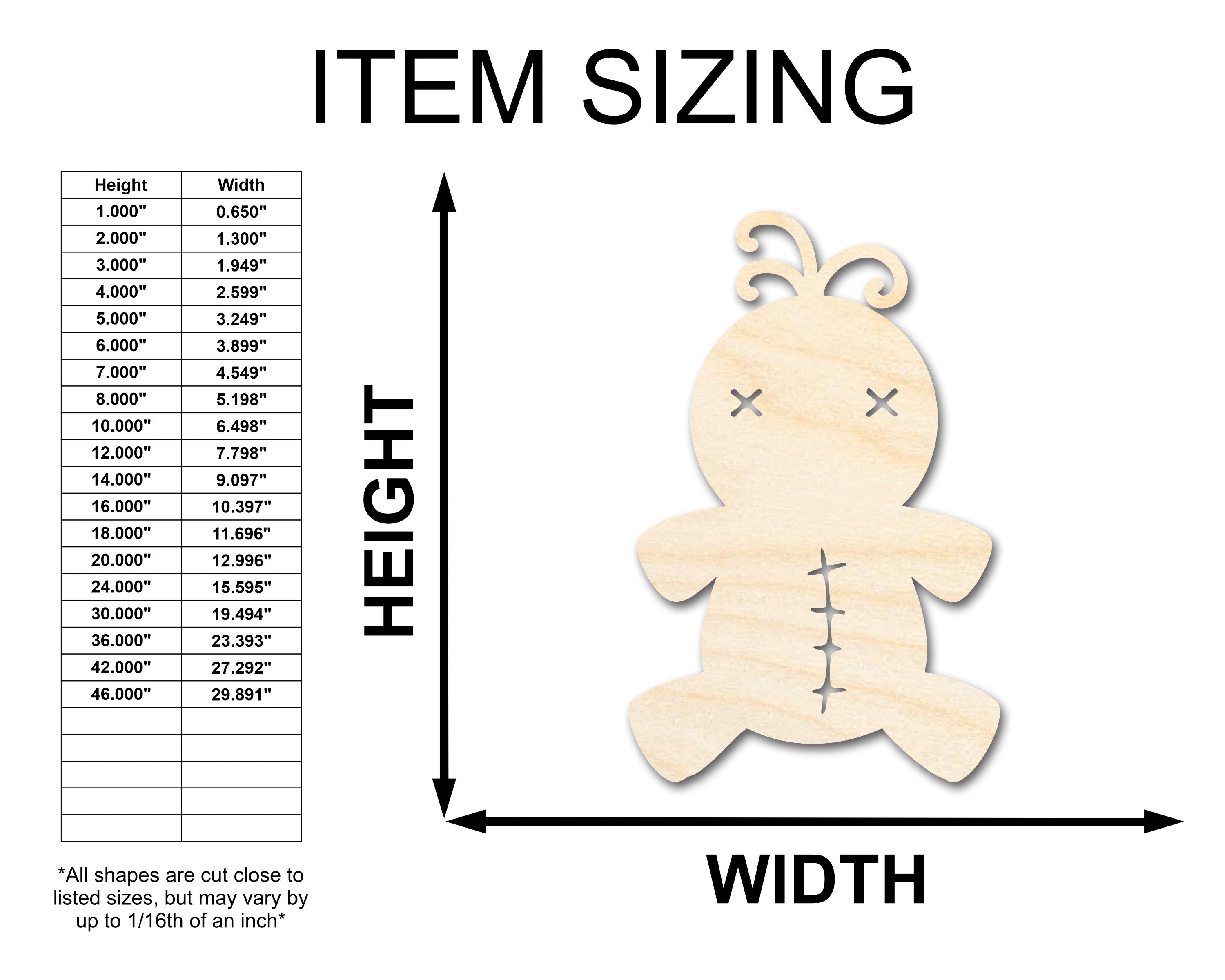 Unfinished Wood Voodoo Doll Shape - Craft - up to 46"
