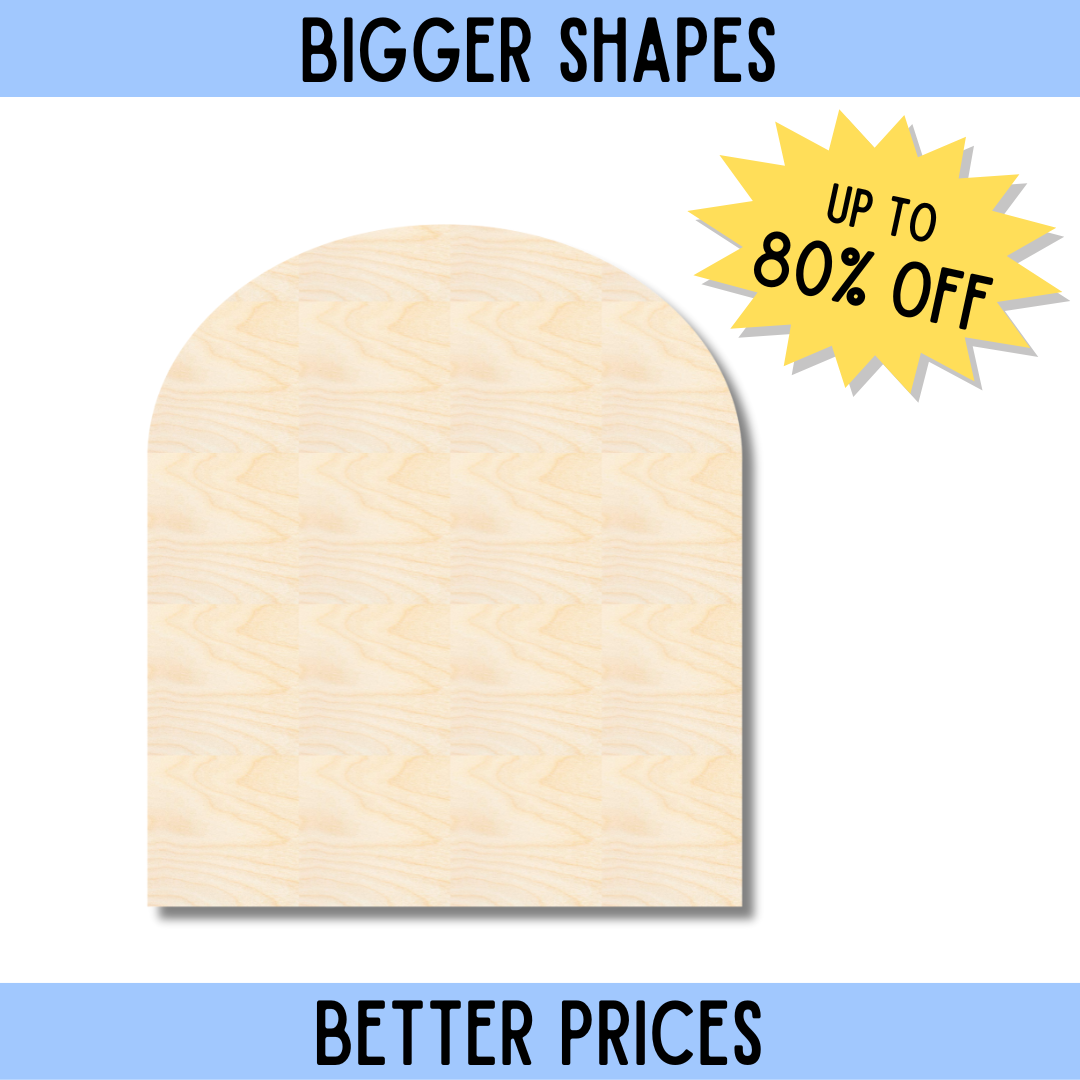 Introducing our "Bigger Better" Collection with bigger shapes at better prices! Create endless possibilities with our Unfinished Wood Arch Shape, perfect for DIY crafting.