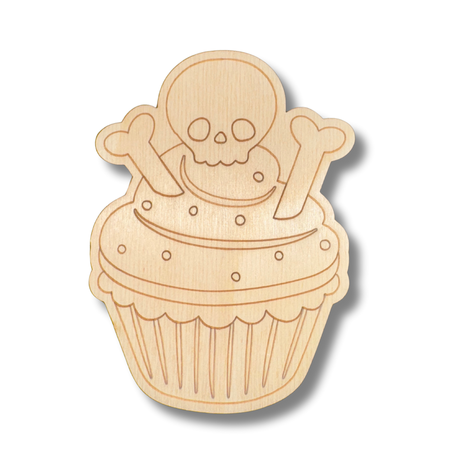 Unfinished Wood Etched Skull Cup Cake Shape | Paint By Line Crafts | up to 30" DIY