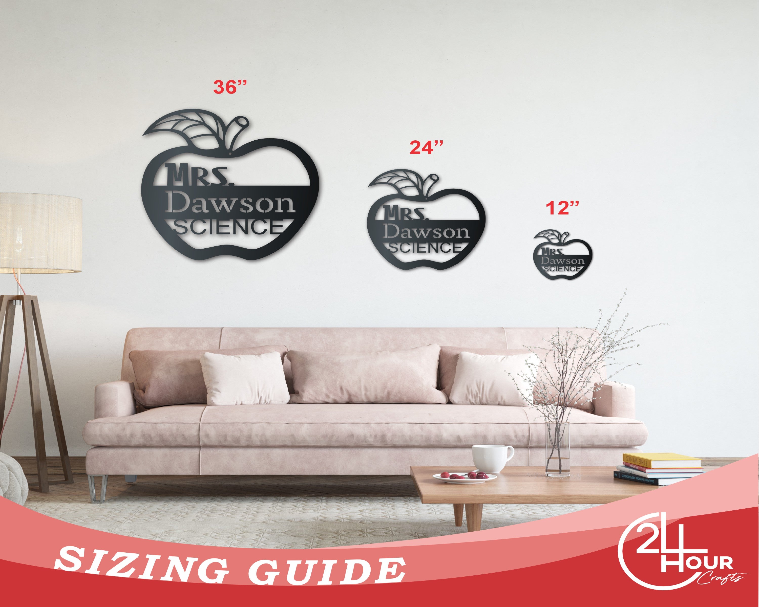 Metal Teacher's Apple Wall Art | School Teacher Metal Sign | Indoor Outdoor | Up to 46" | Over 20 Color Options