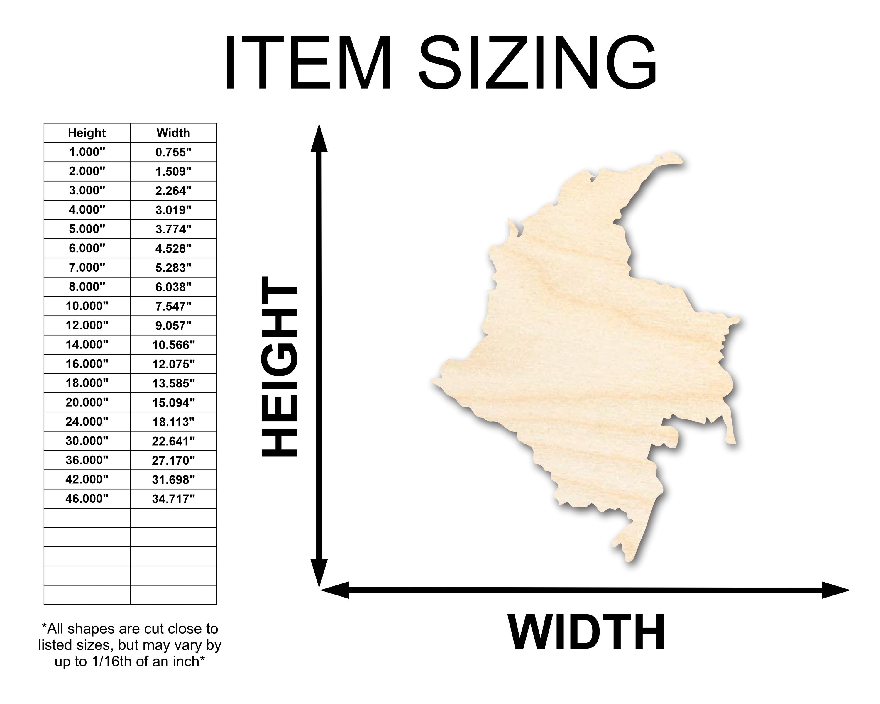 Unfinished Wood Columbia Country Shape - South America Craft - up to 46" DIY