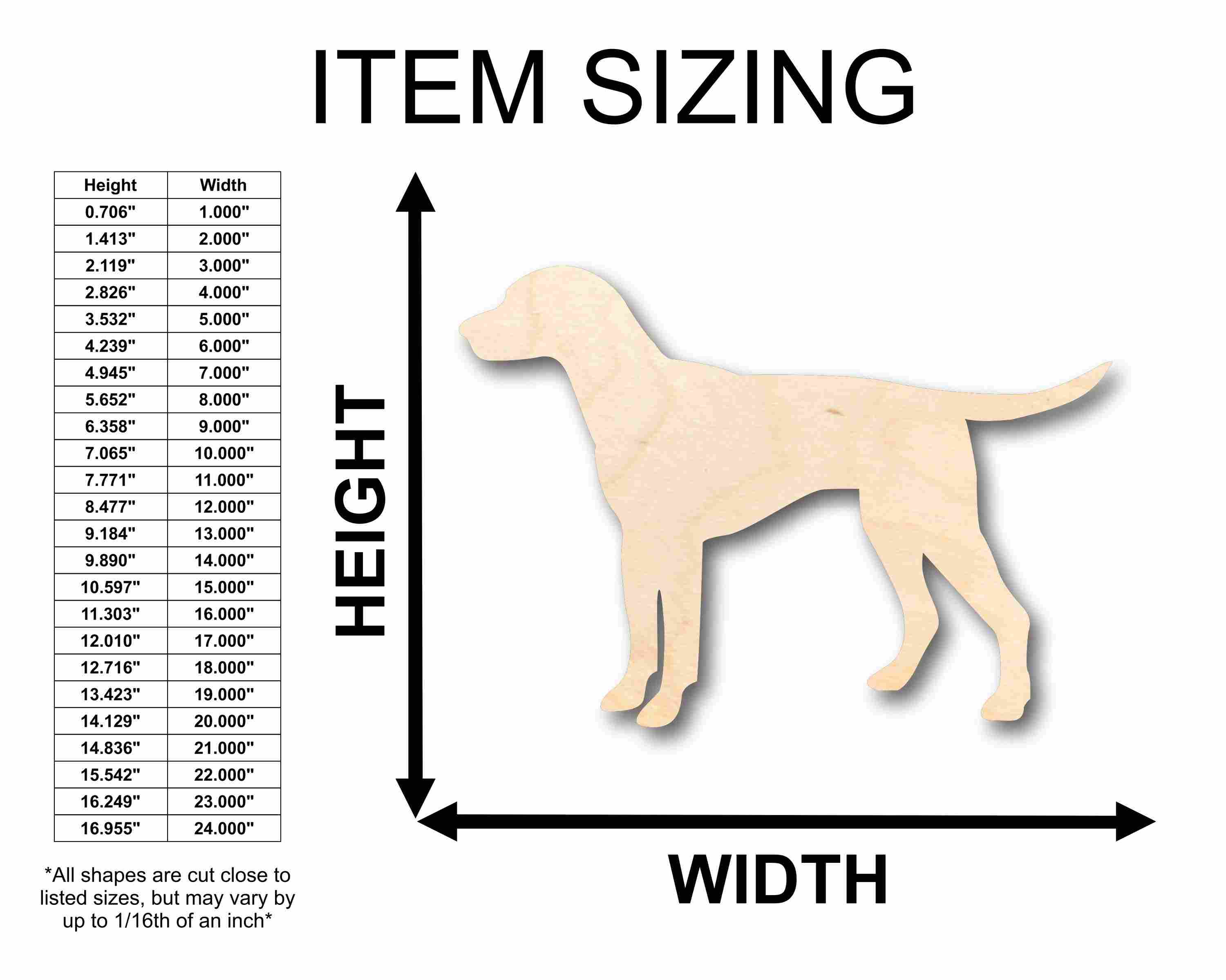 Unfinished wood shapes are available from 3" up to 48" (Some intricate shapes will not be available at smaller sizes)