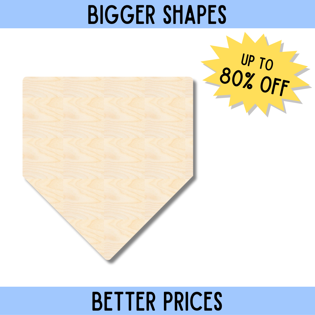 Introducing our "Bigger Better" Collection with bigger shapes at better prices! Create endless possibilities with our Unfinished Wood Home Plate Shape, perfect for DIY crafting.