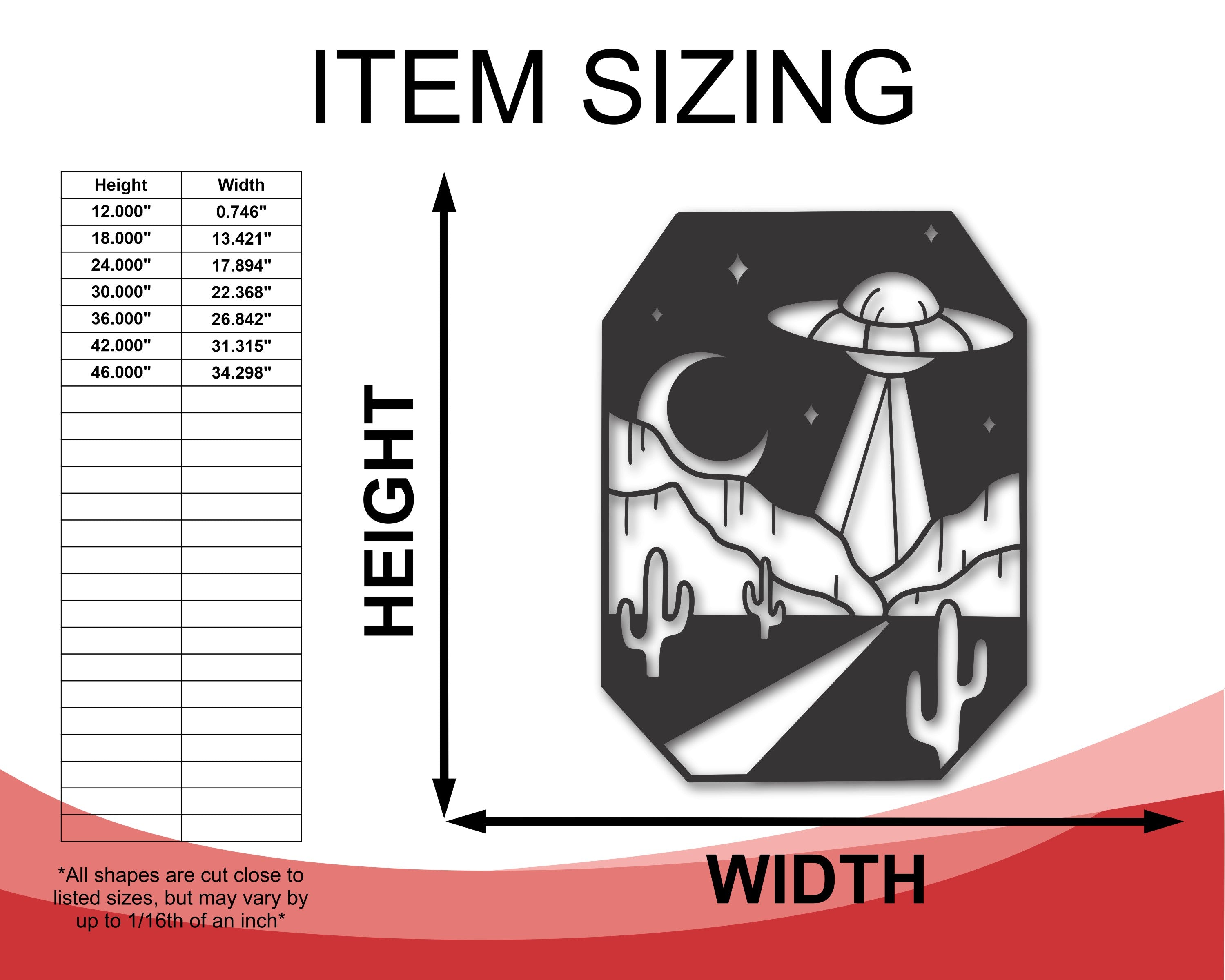 Alien desert metal wall art. Flying saucer shape celebrates your unique home decor! Durable coating for indoor or outdoor decoration.