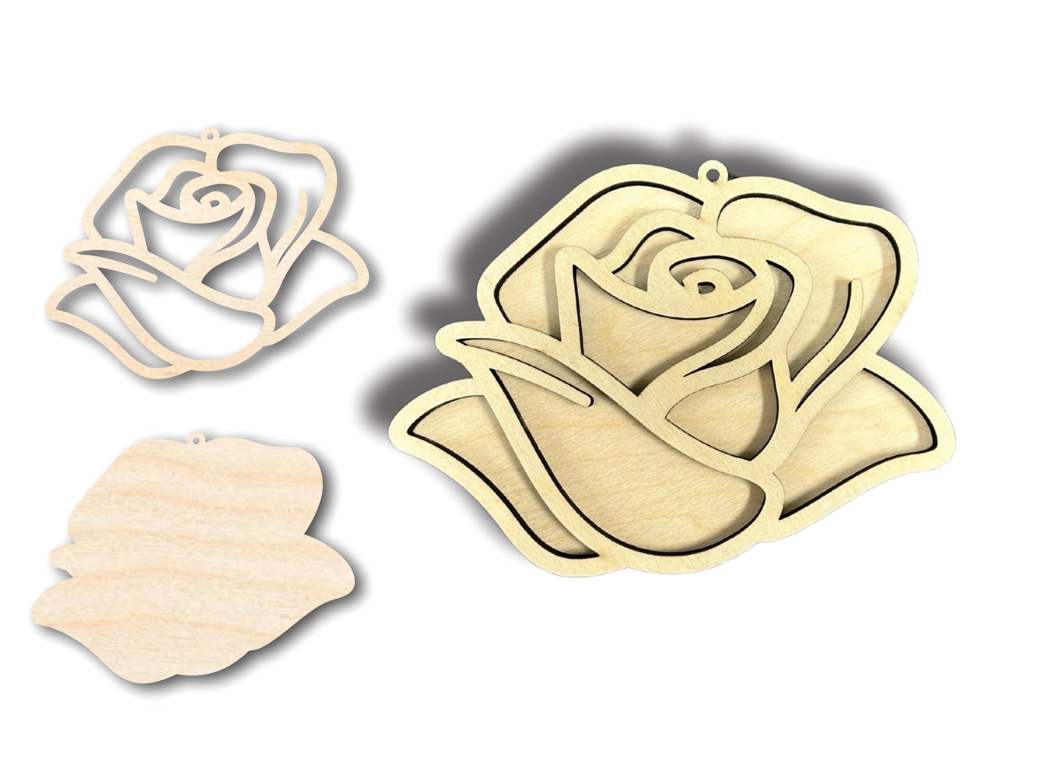 Unfinished Wood 2 Layer Rose Shadowbox Shape | DIY Craft Cutout | up to 46" DIY