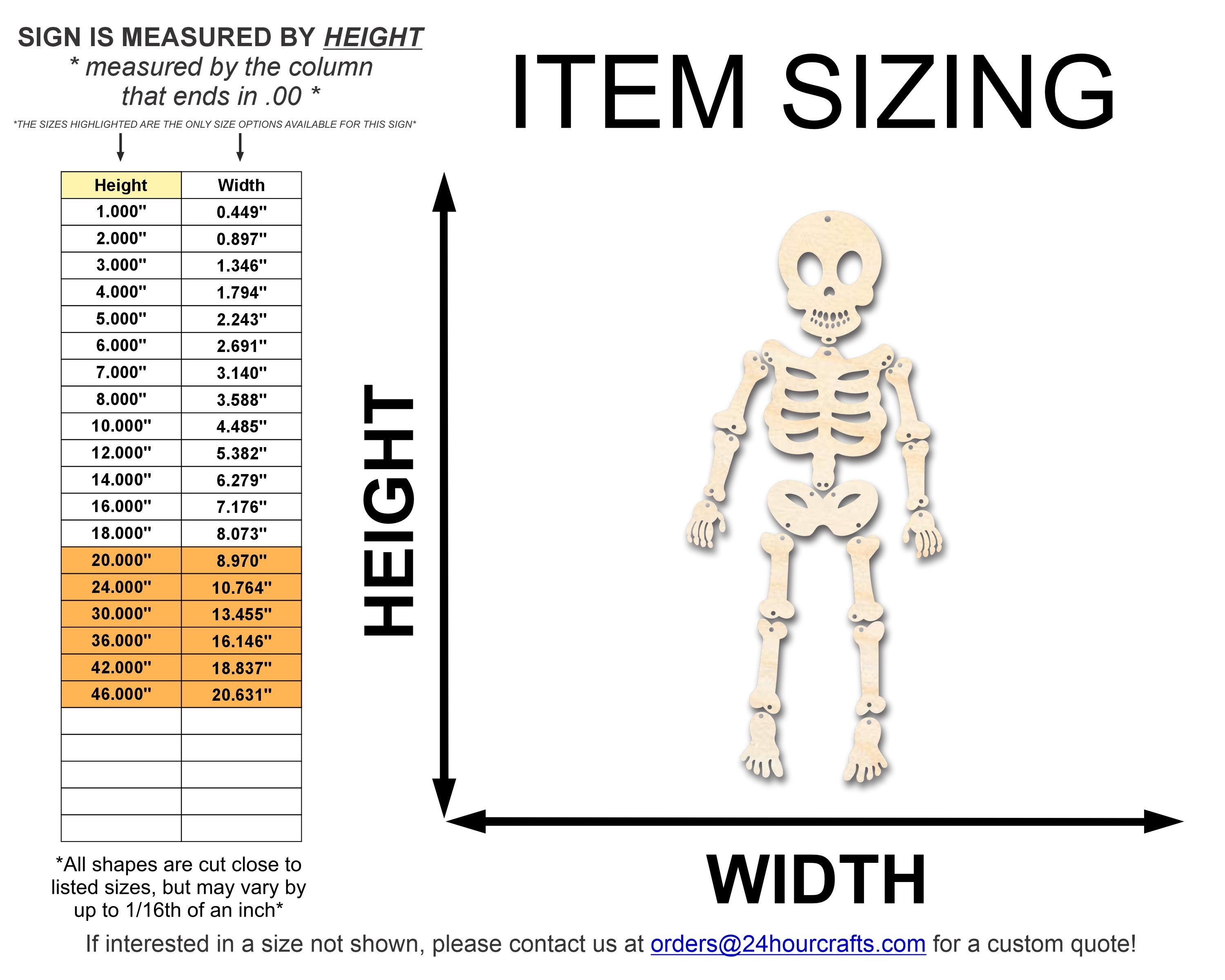 👉 Important: This sign is sized by height, which means the size you select will determine the overall height of the finished skeleton. Please check our “Item Sizing” page before ordering to ensure the perfect fit.