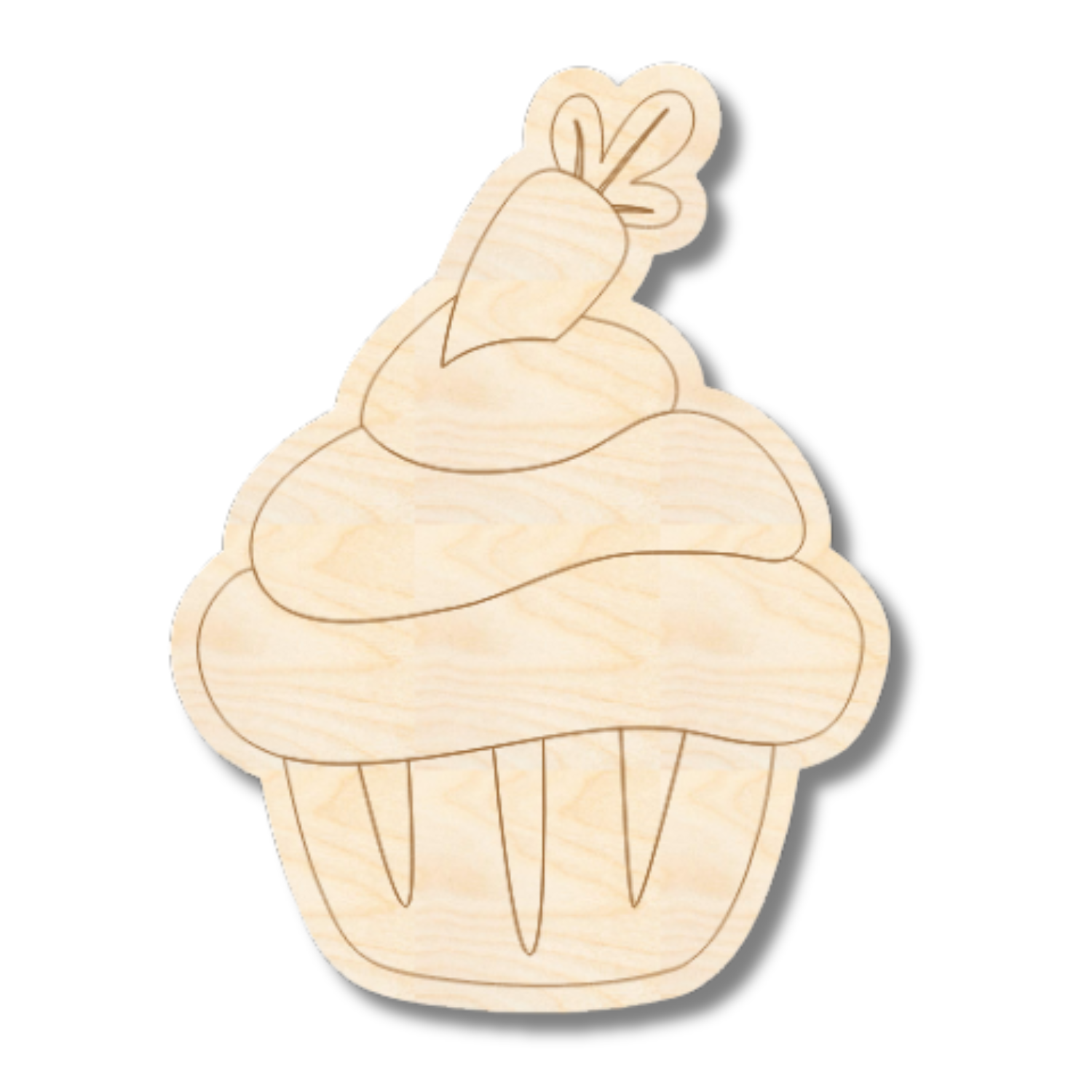 Unfinished Wood Etched Carrot Cup Cake Shape | Paint By Line Crafts | up to 30" DIY