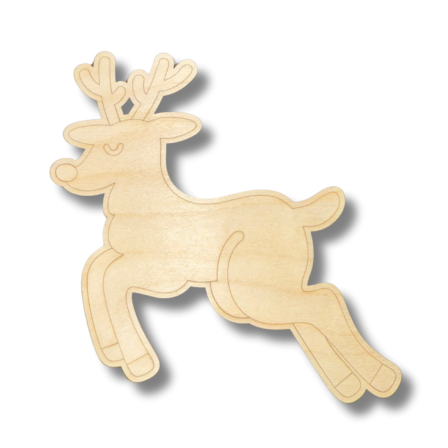 Unfinished Wood Etched Prancing Reindeer Shape | Paint By Line Crafts | up to 30" DIY