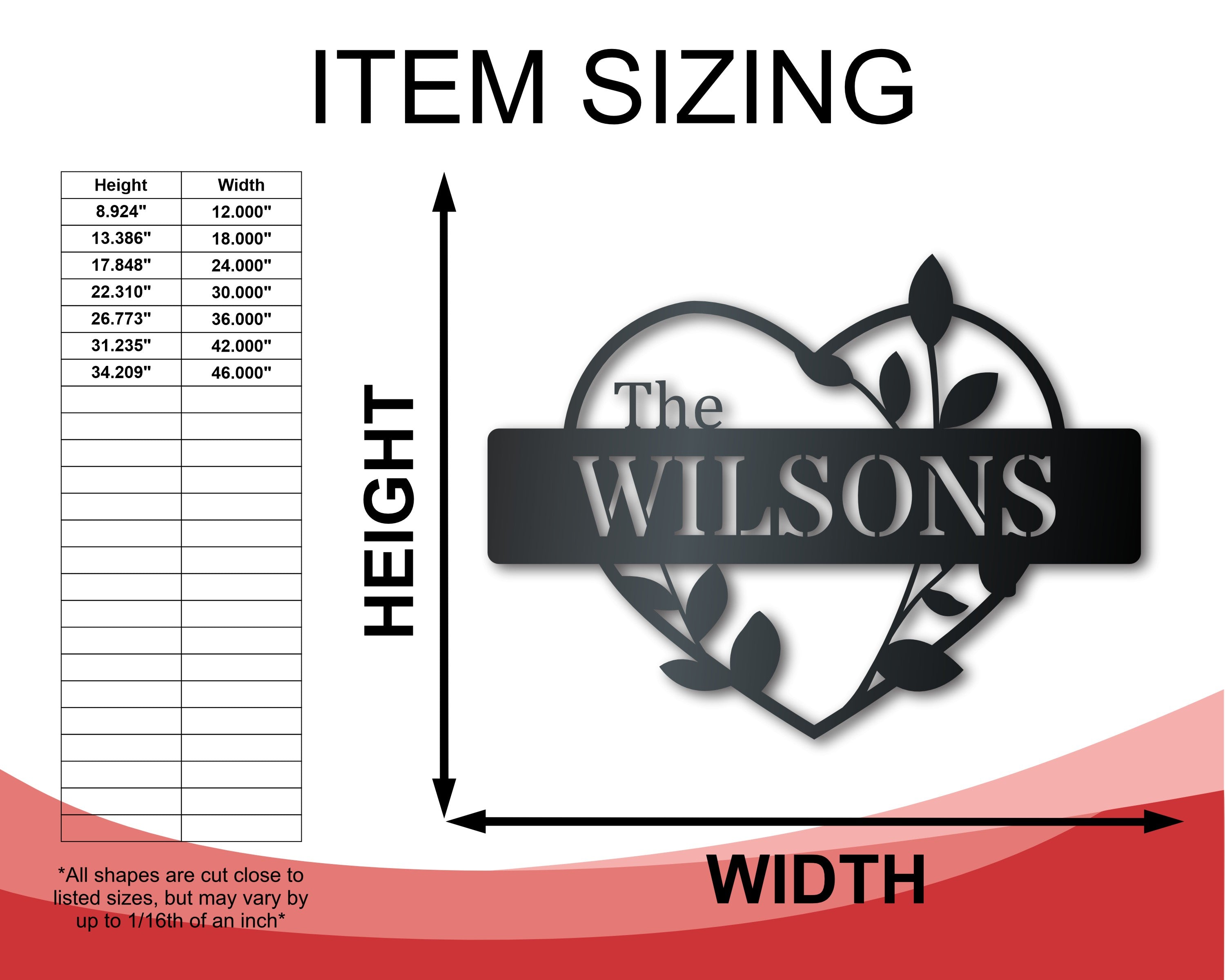 Custom Metal Family Leaf Heart Wall Art - Custom Metal Sign - 14 Color Options - Valentine's Day - Wedding - Anniversary - Housewarming