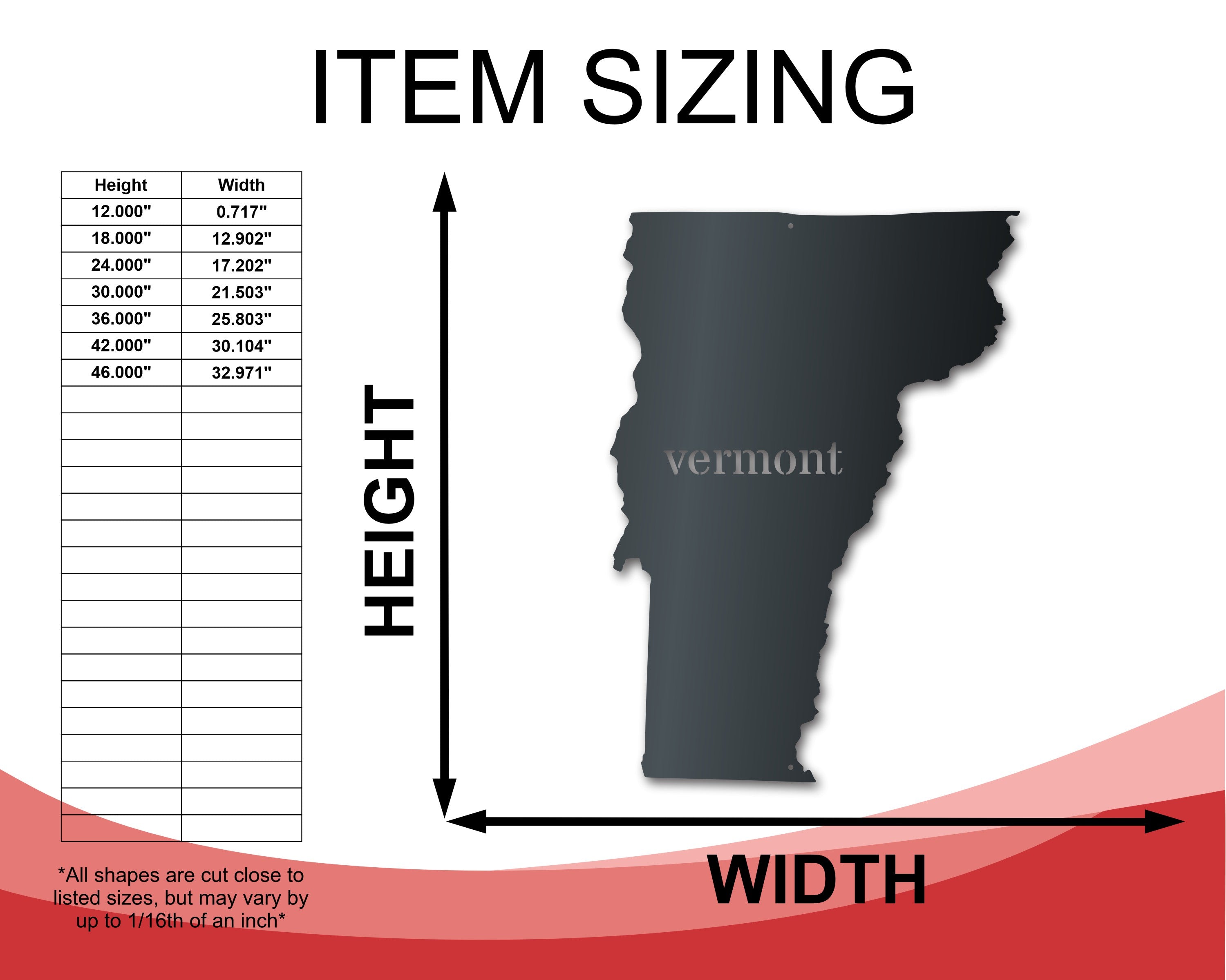 Metal Vermont Wall Art - Custom Metal US State Sign - 14 Color Options