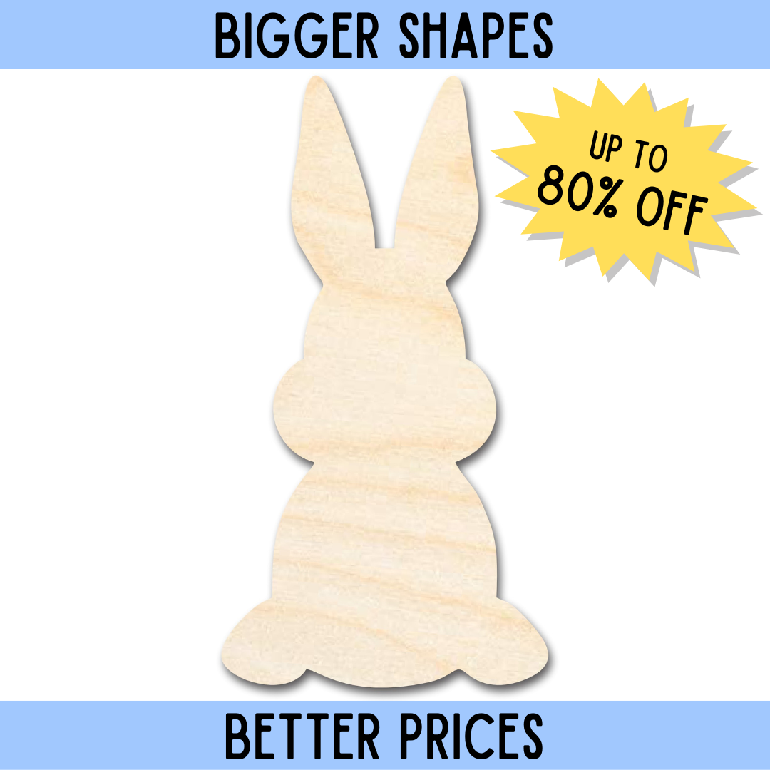 Introducing our "Bigger Better" Collection with bigger shapes at better prices! Create endless possibilities with our Unfinished Wood Sitting Bunny Shape, perfect for DIY crafting.