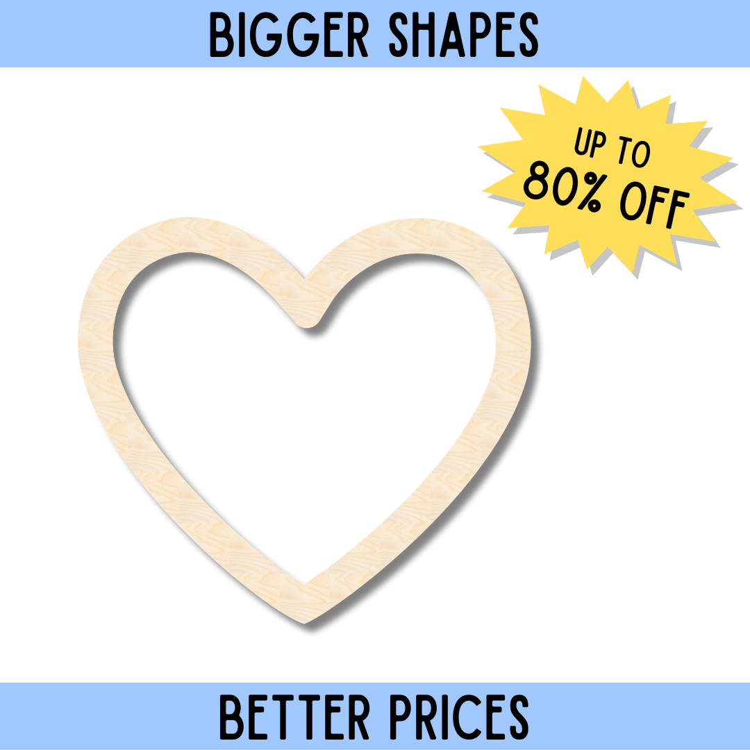 Introducing our "Bigger Better" Collection with bigger shapes at better prices! Create endless possibilities with our Unfinished Wood Heart Border Shape, perfect for DIY crafting.