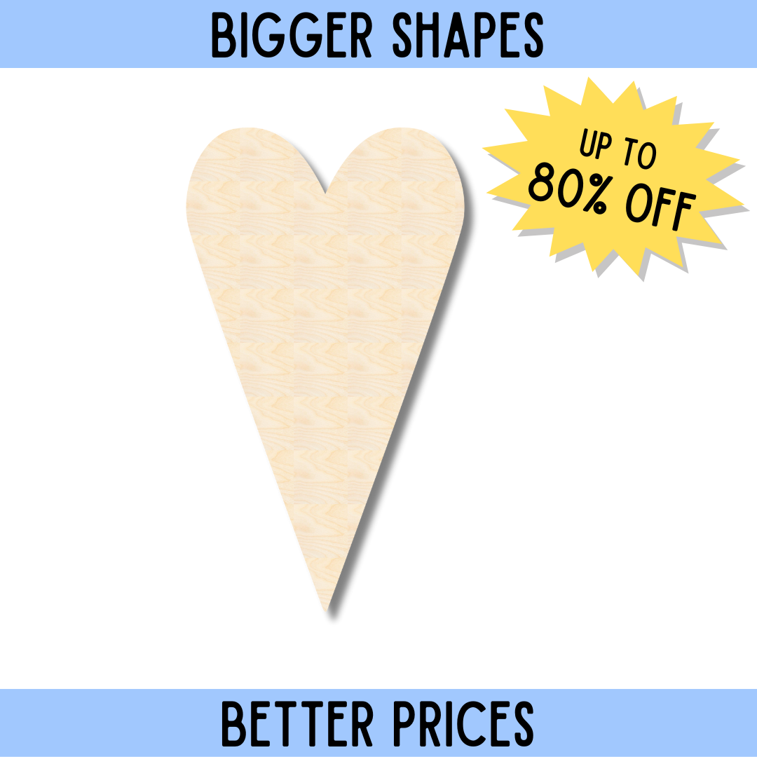 Bigger Better | Unfinished Wood Tall Classic Heart Shape | DIY Craft Cutout |
