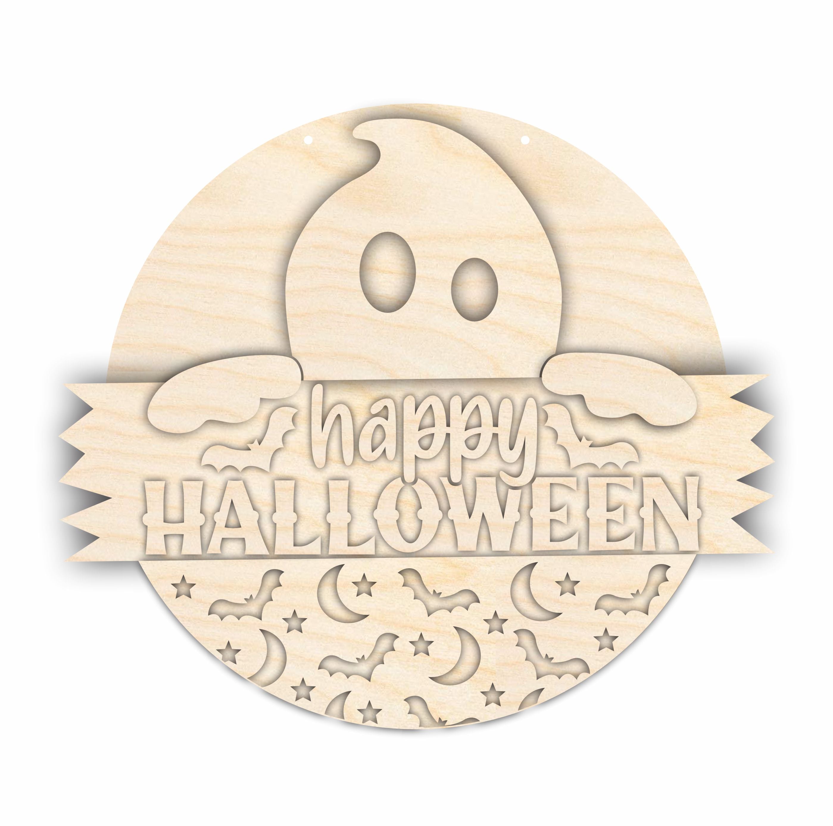 Unfinished Wood Ghost Halloween Door Sign Kit | Wood Craft Cutouts | 1/4" Thick |