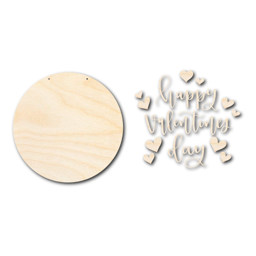 Unfinished Wood Happy Valentine's Day Door Sign Kit | Wood Craft Cutouts | 1/4" Thick |