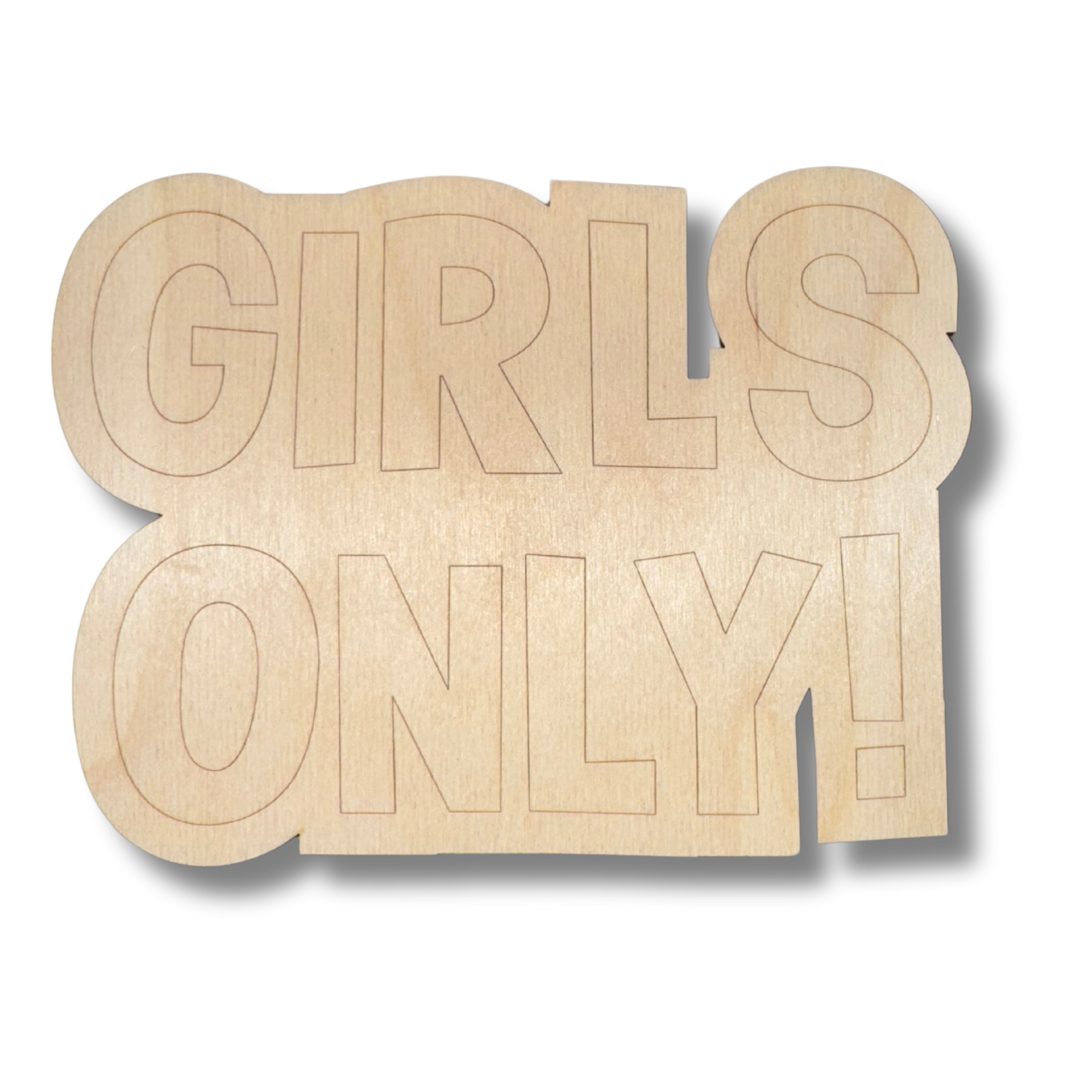Unfinished Wood Etched Girls Only! Shape | Paint By Line Crafts | up to 30" DIY