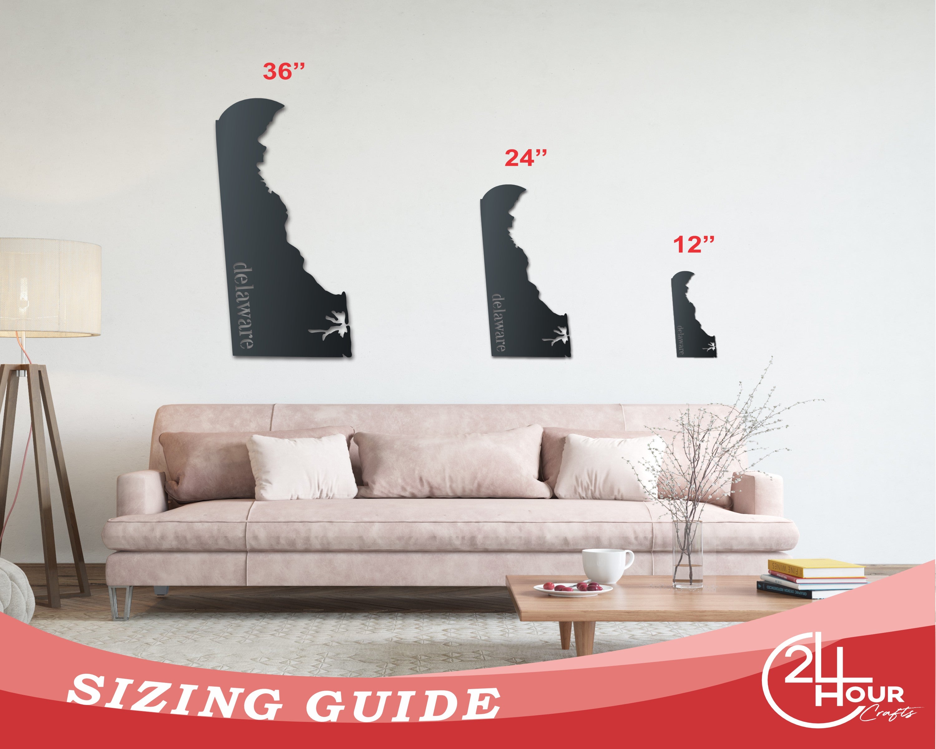 Metal Delaware Wall Art - Custom Metal US State Sign - 14 Color Options