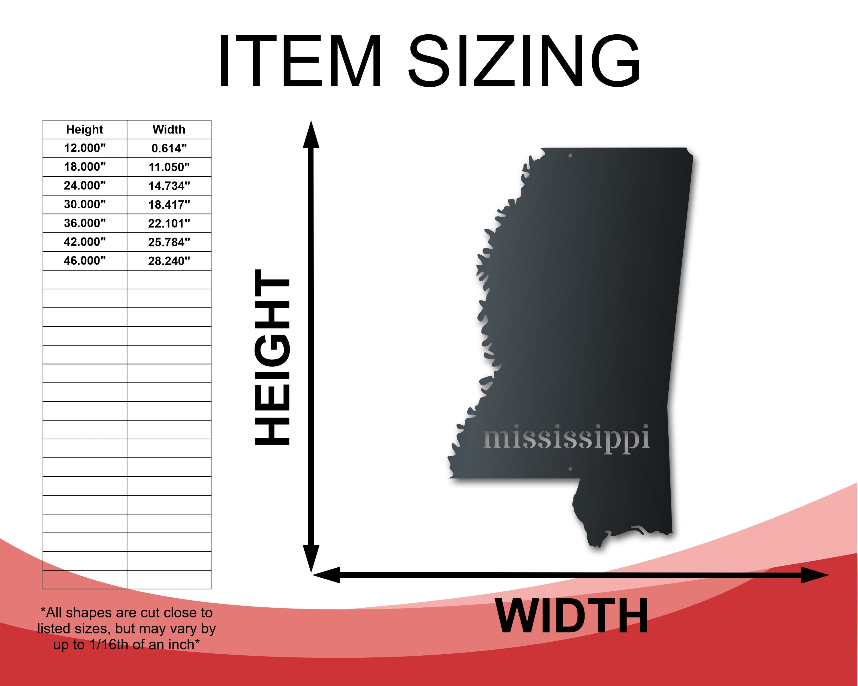Metal Mississippi Wall Art - Custom Metal US State Sign - 14 Color Options