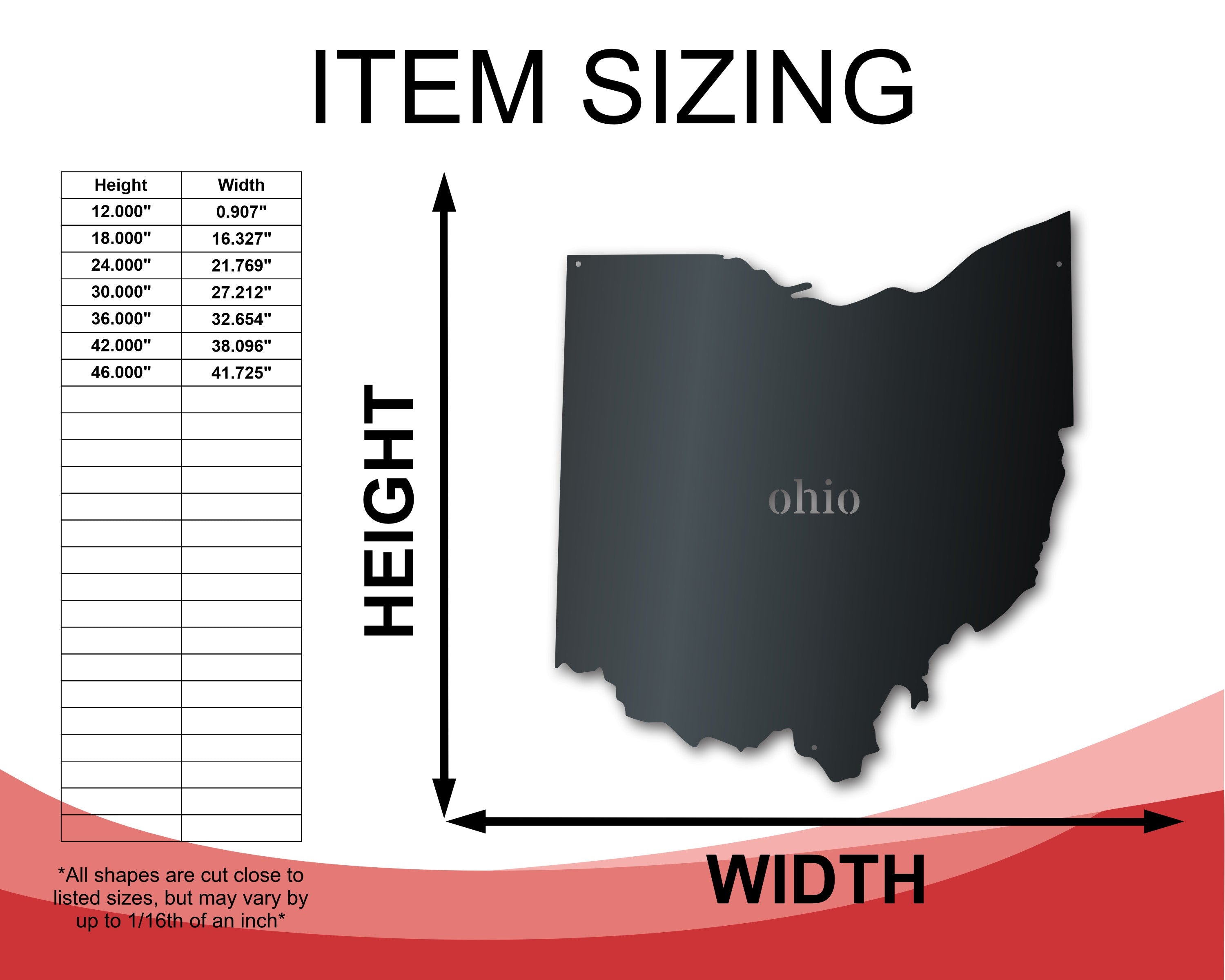 Metal Ohio Wall Art - Custom Metal US State Sign - 14 Color Options