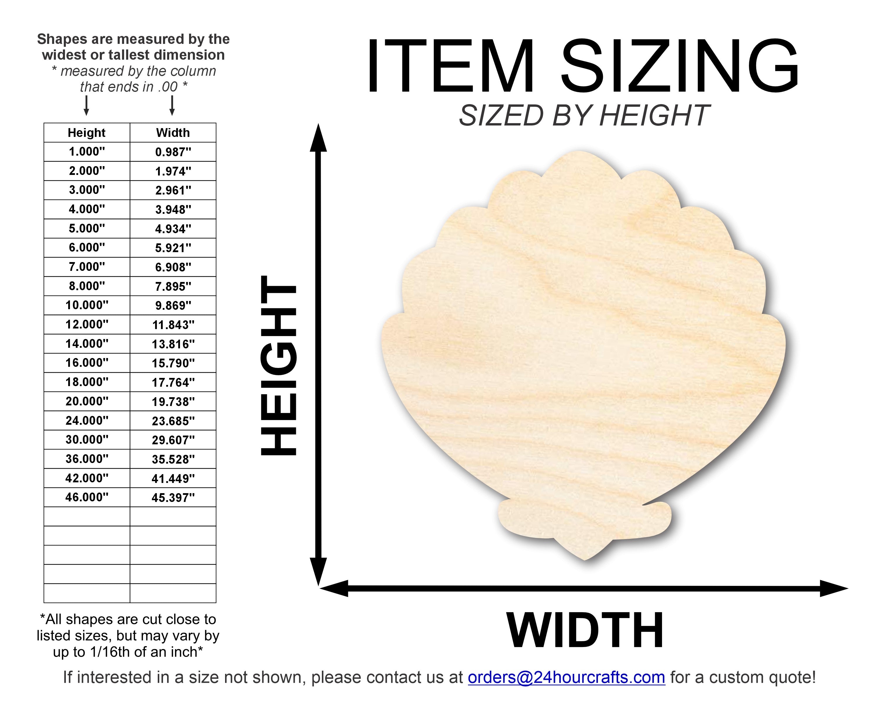 Unfinished Wood Clam Sea Shell Shape | DIY Craft Cutout | up to 46" DIY