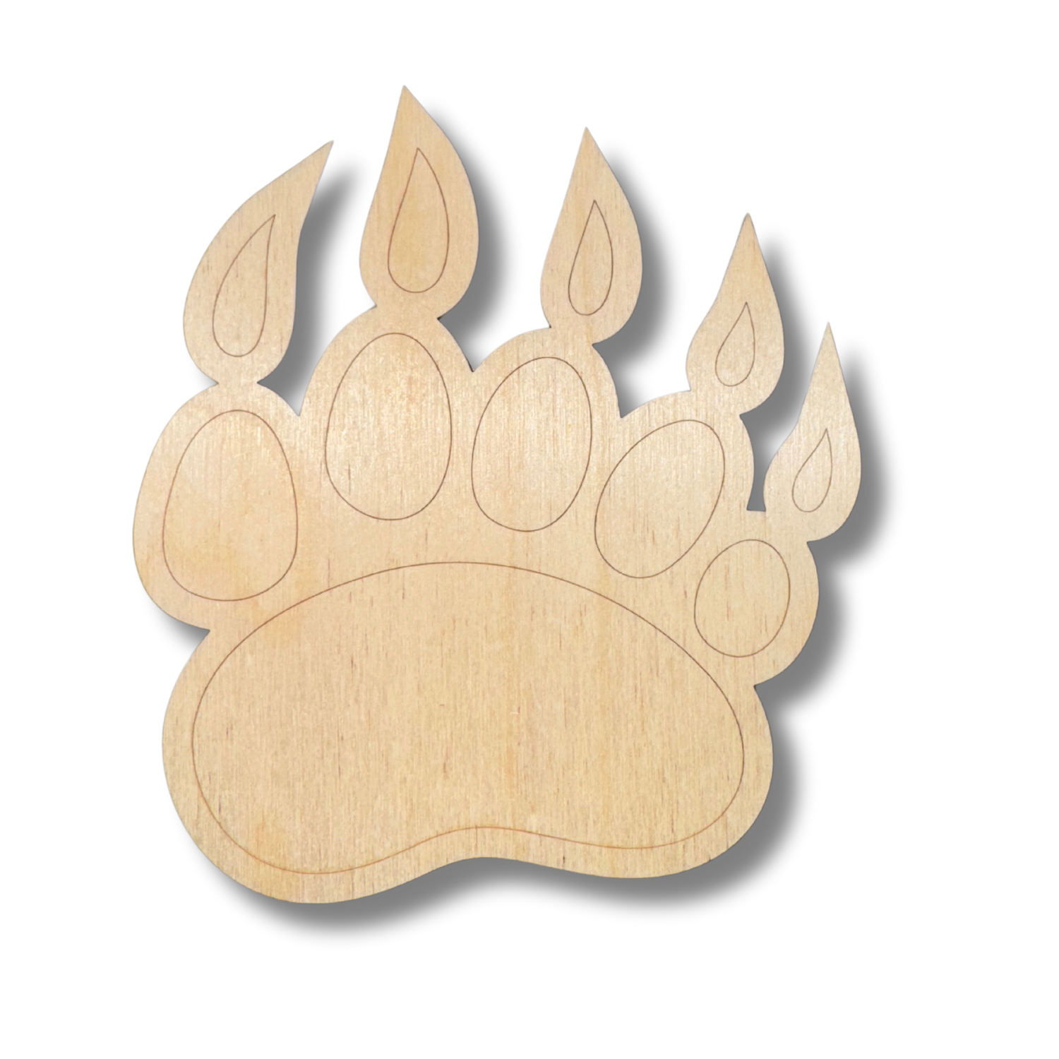 Unfinished Wood Etched Bear Paw Shape | Paint By Line Crafts | up to 30" DIY