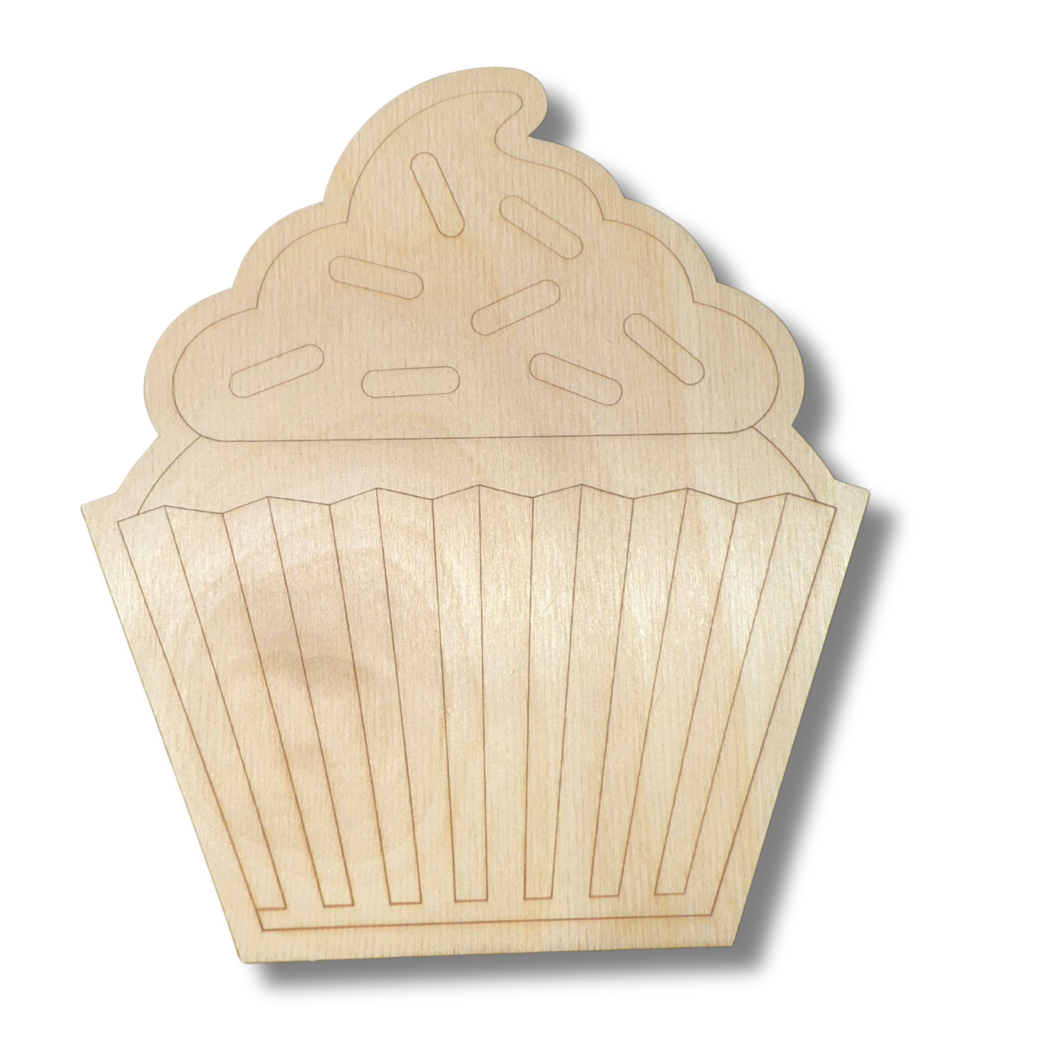 Unfinished Wood Etched Cupcake Shape | Paint By Line Crafts | up to 30" DIY