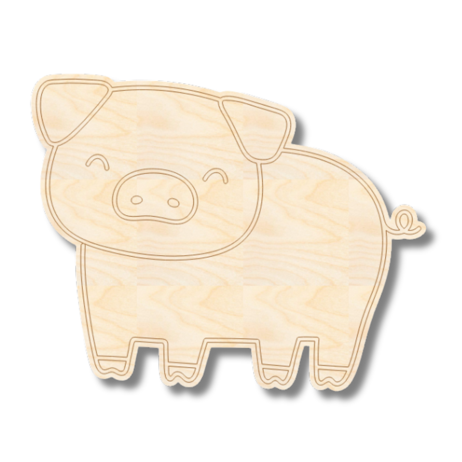Unfinished Wood Etched Farm Pig Shape | Paint By Line Crafts | up to 30" DIY