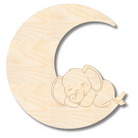 Unfinished Wood Etched Sleeping Elephant on Moon Shape | Paint By Line Crafts | up to 30" DIY