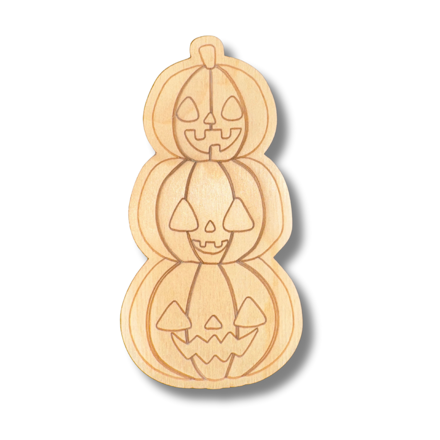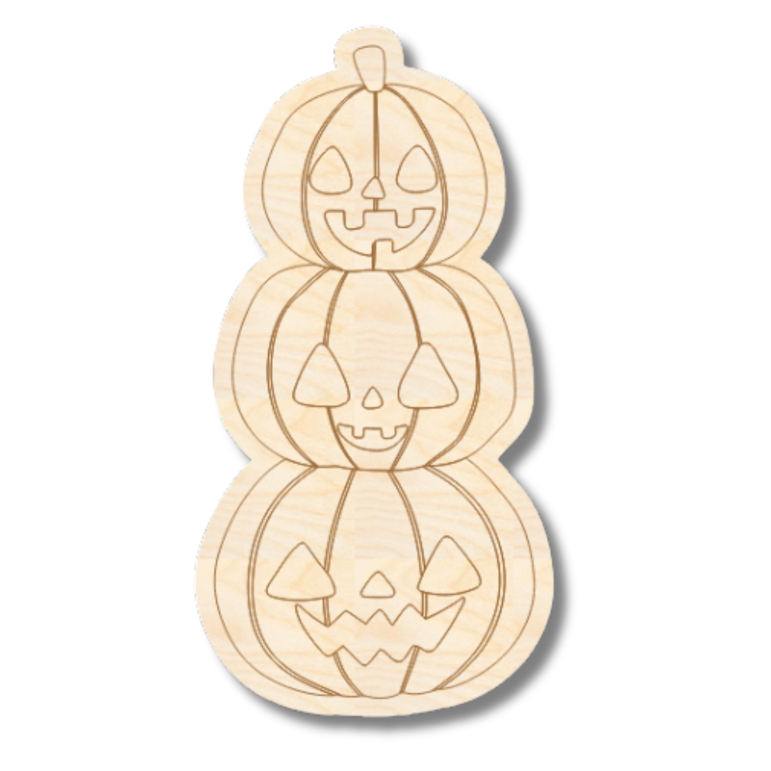 Unfinished Wood Etched Stacked Jack o 'Lantern Shape | Paint By Line Crafts | up to 30" DIY