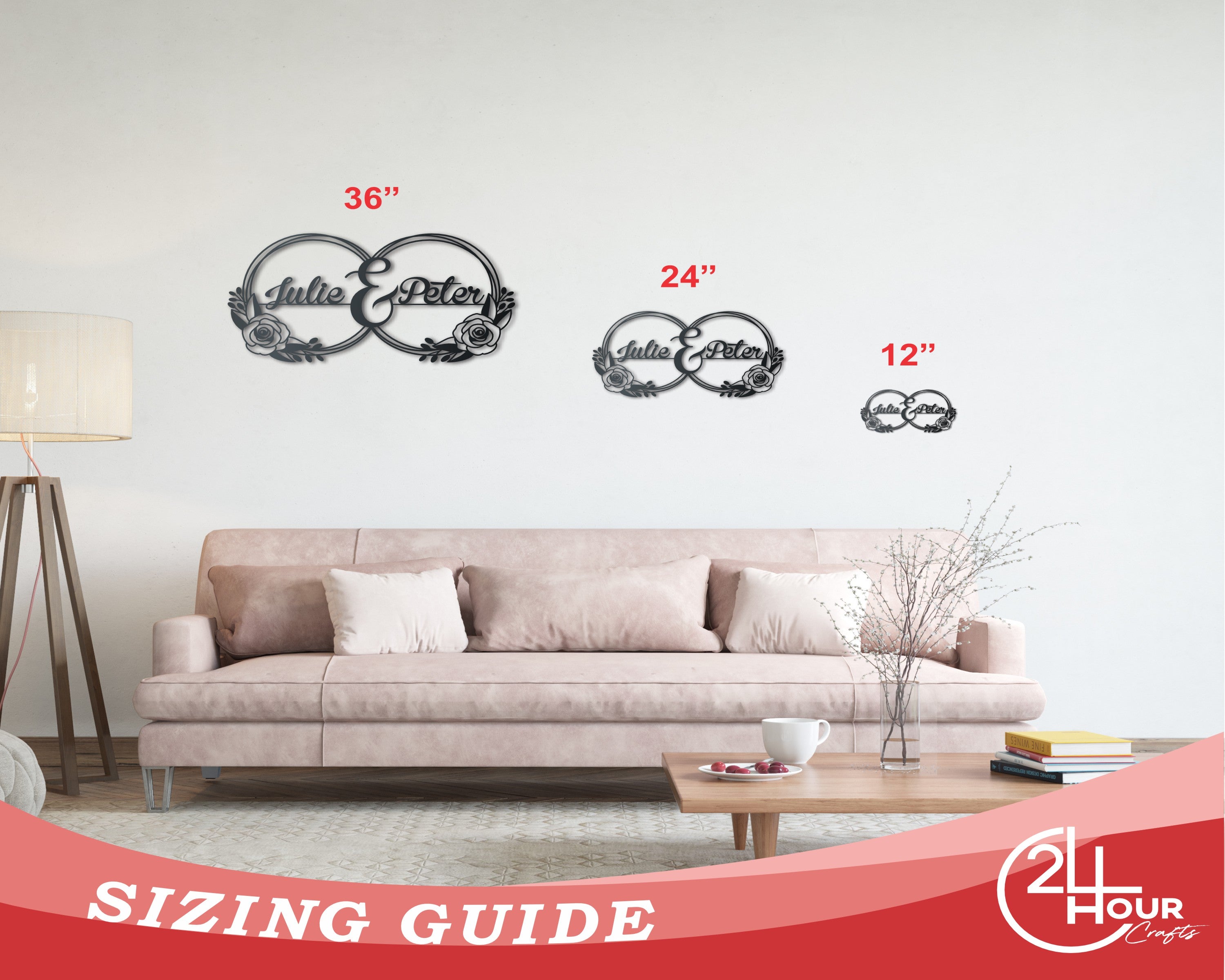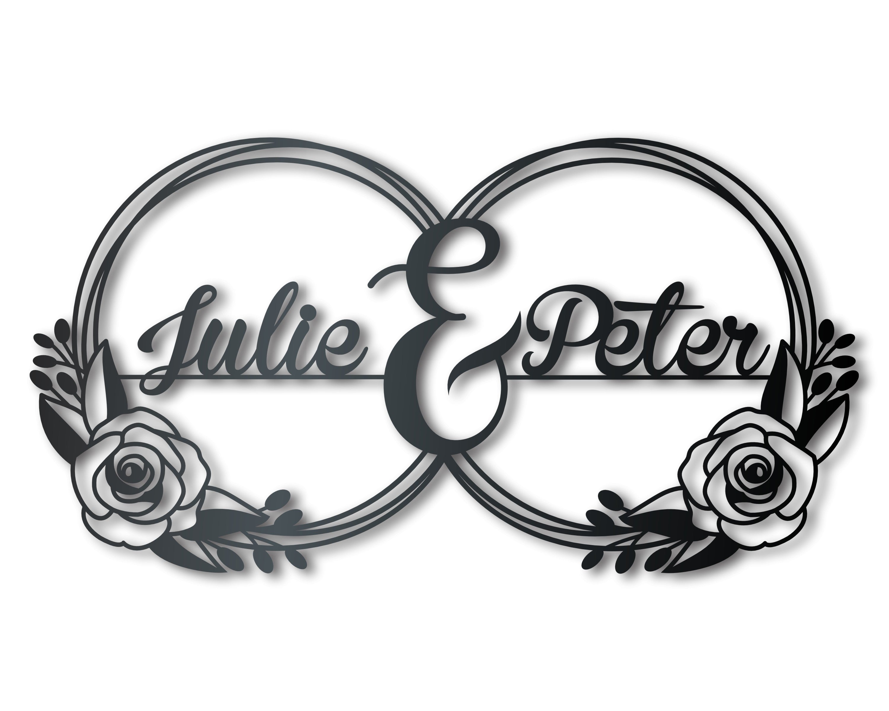 Metal Custom Couples Rose Rings Wall Art - Custom Metal Sign - 14 Color Options