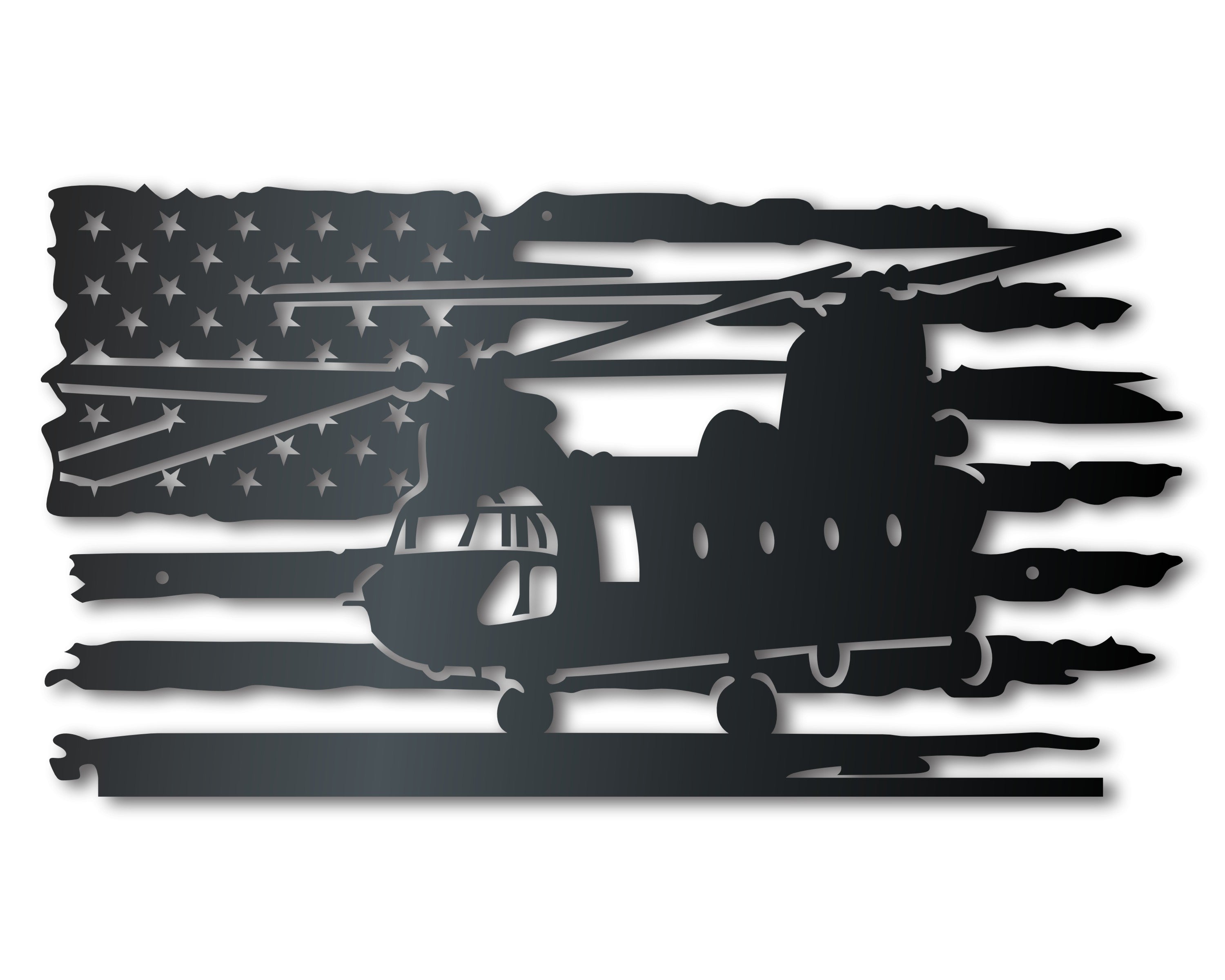 Metal USA Army Helicopter Wall Art | Patriotic Military Veteran | Indoor Outdoor | Up to 36" | Over 20 Color Options