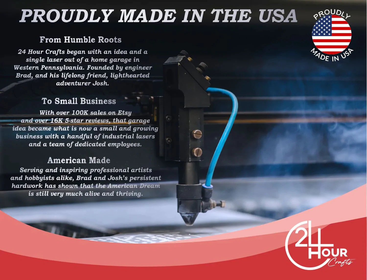 We make all our products by hand in the suburbs of Pittsburgh. We operate this small business with an attention to detail that can be seen in the quality of our finished products.