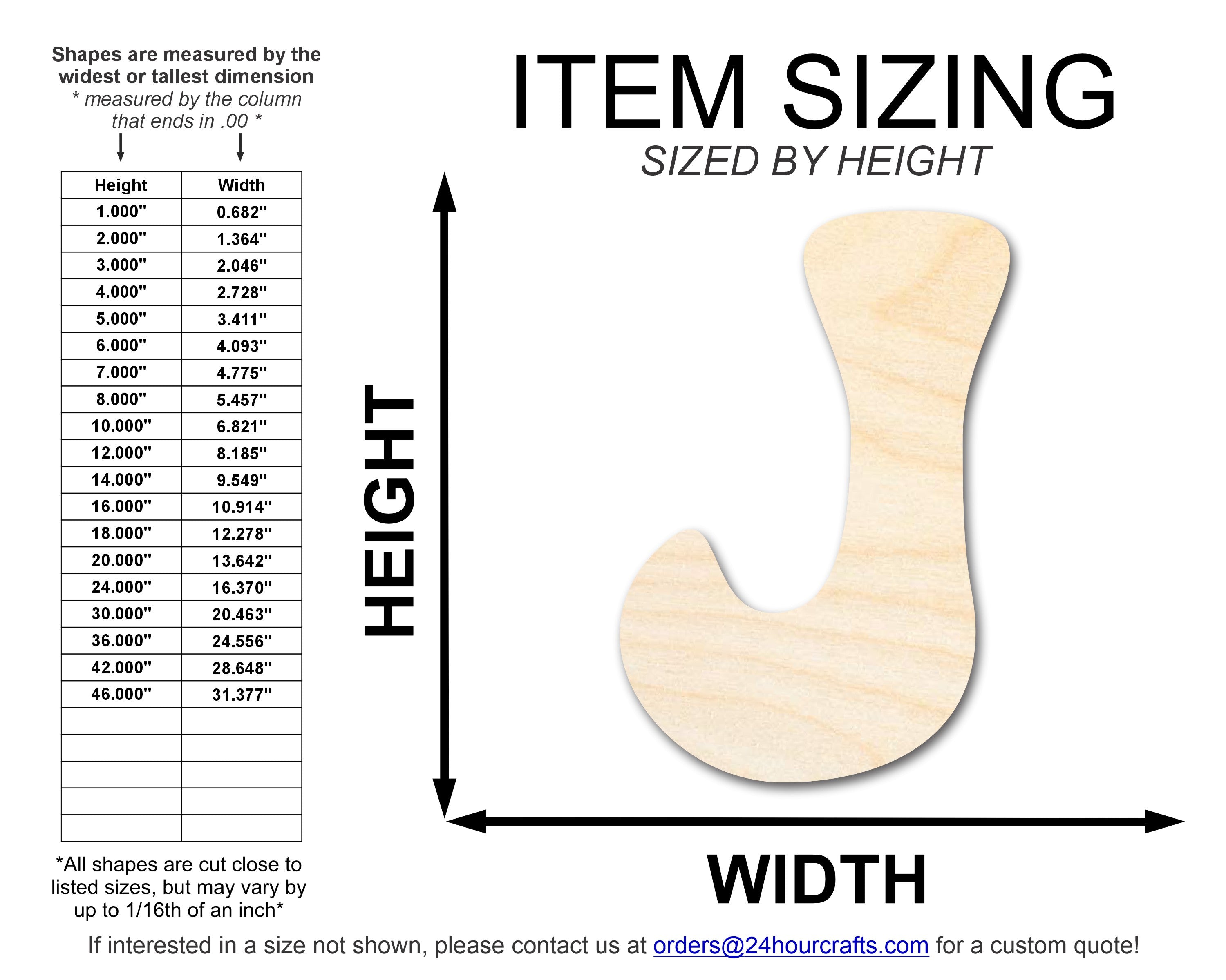 Unfinished Wood Groovy J Font Shape | DIY Craft Cutout | up to 46" DIY