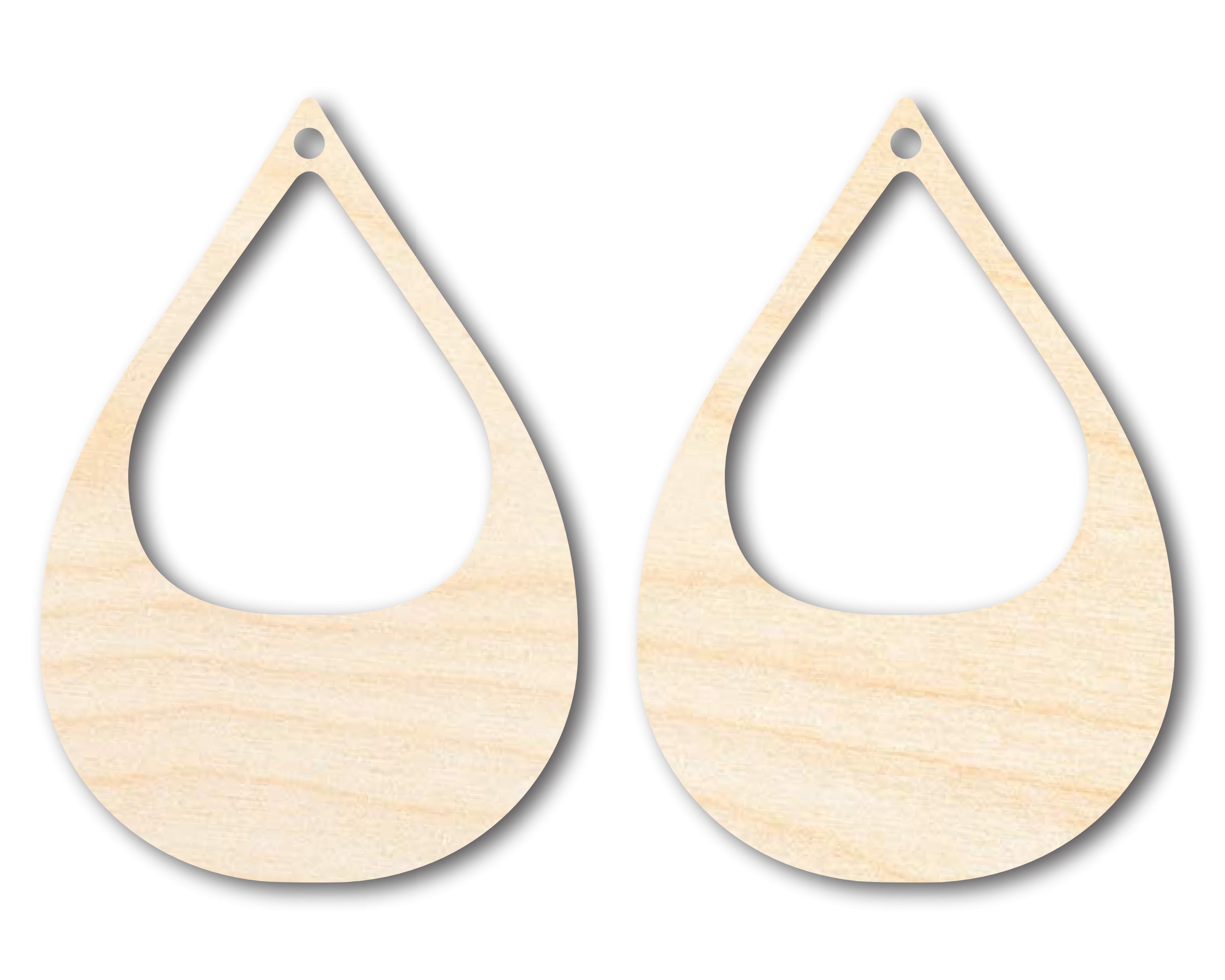 Unfinished Wood Hollow Teardrop Earring Blank Pair - DIY Jewelry Craft - Available in 1" to 3"