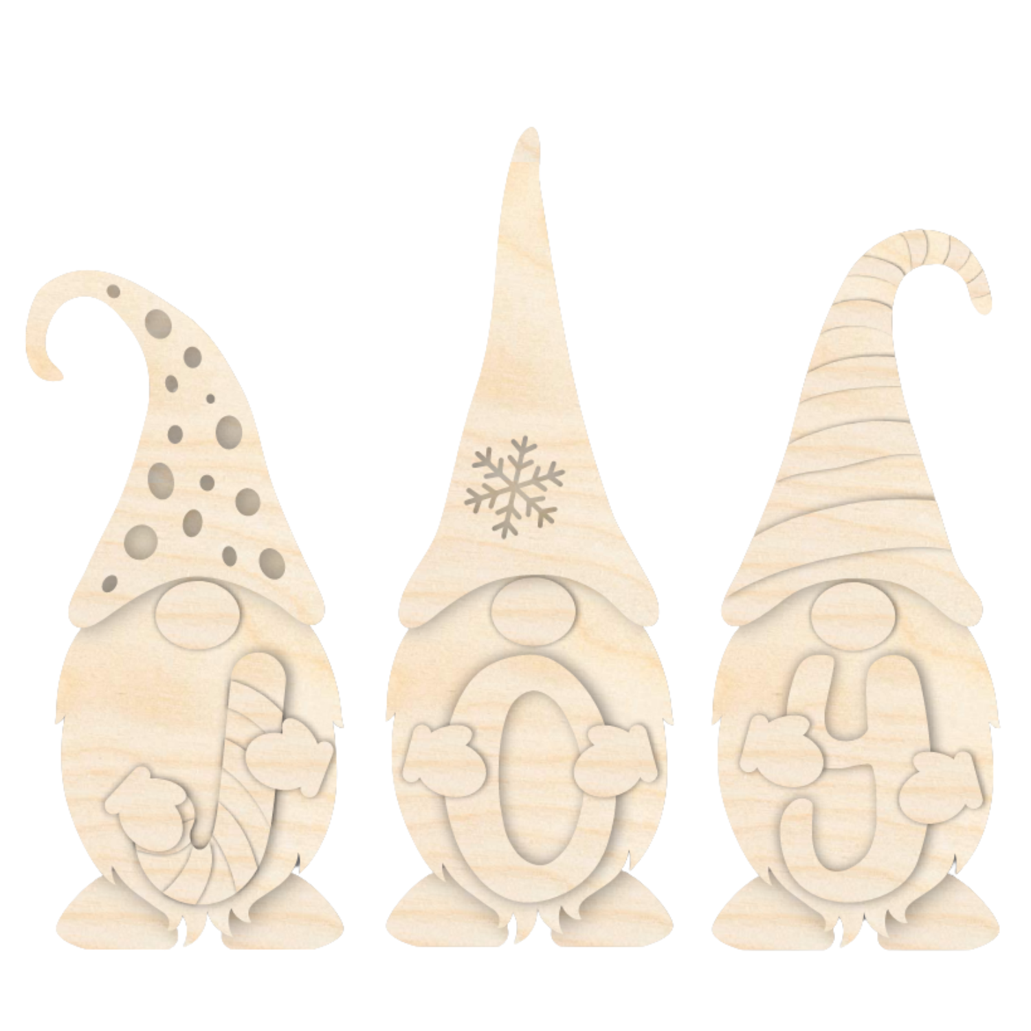 Unfinished Wood Layered and Etched Gnome Shelf Sitters | Set of 3 | 1/4" Wood | Wood Craft DIY