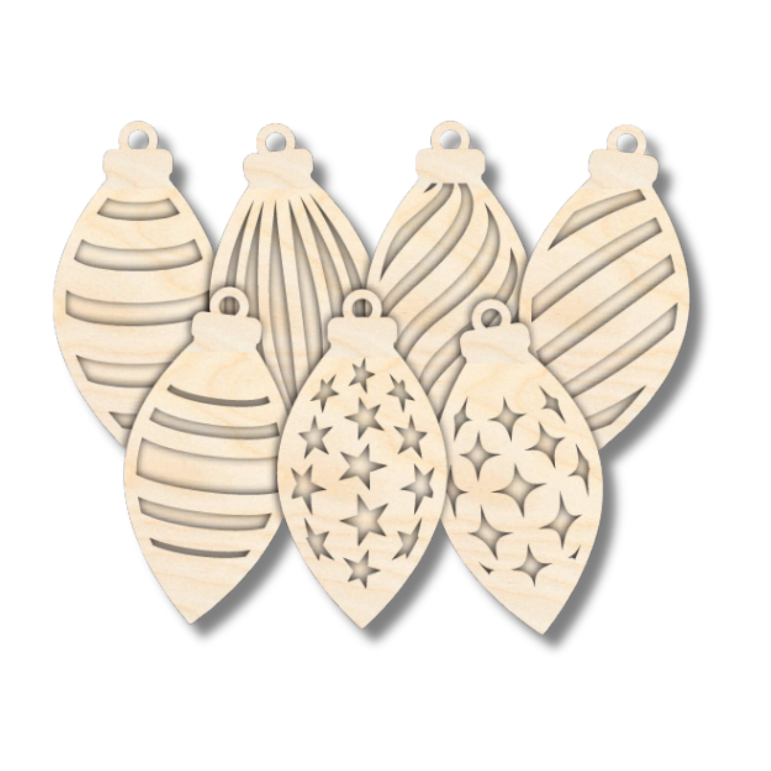 Unfinished Wood Layered Christmas Bulb Ornaments | 2 Piece | 5" Tall | 1/8" Wood | Wood Craft DIY