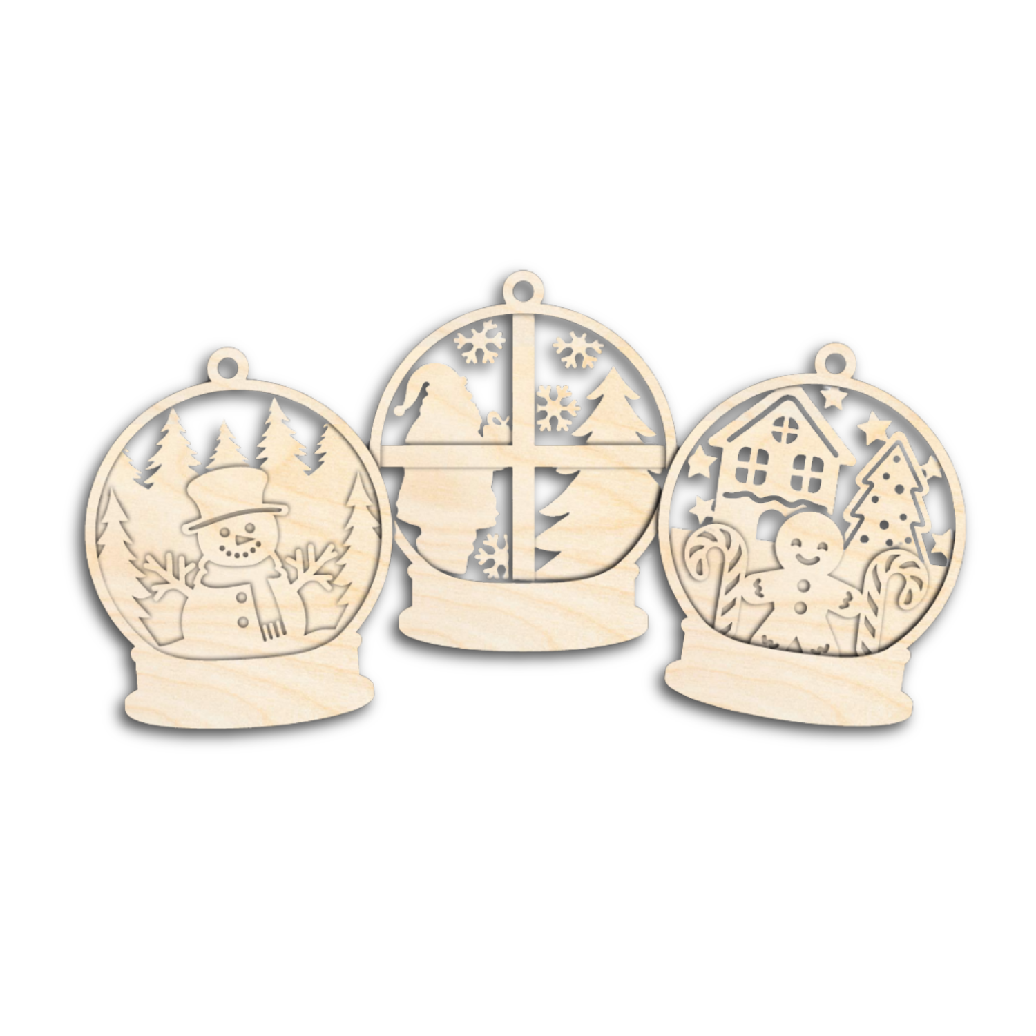 Unfinished Wood Layered Snow Globe Christmas Ornaments | 3 Piece | 5" Tall | 1/8" Wood | Wood Craft DIY