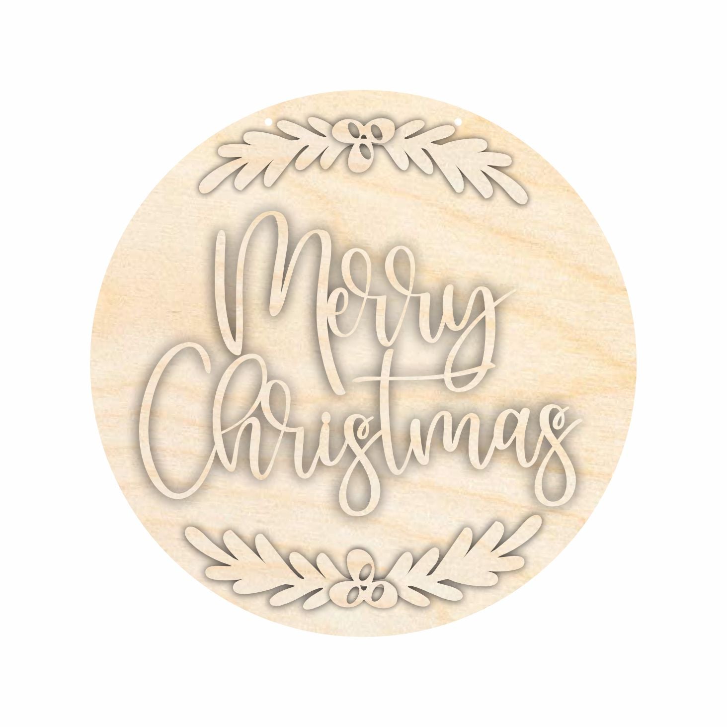 Unfinished Wood Merry Christmas Door Sign Kit | Wood Craft Cutouts | 1/4" Thick |