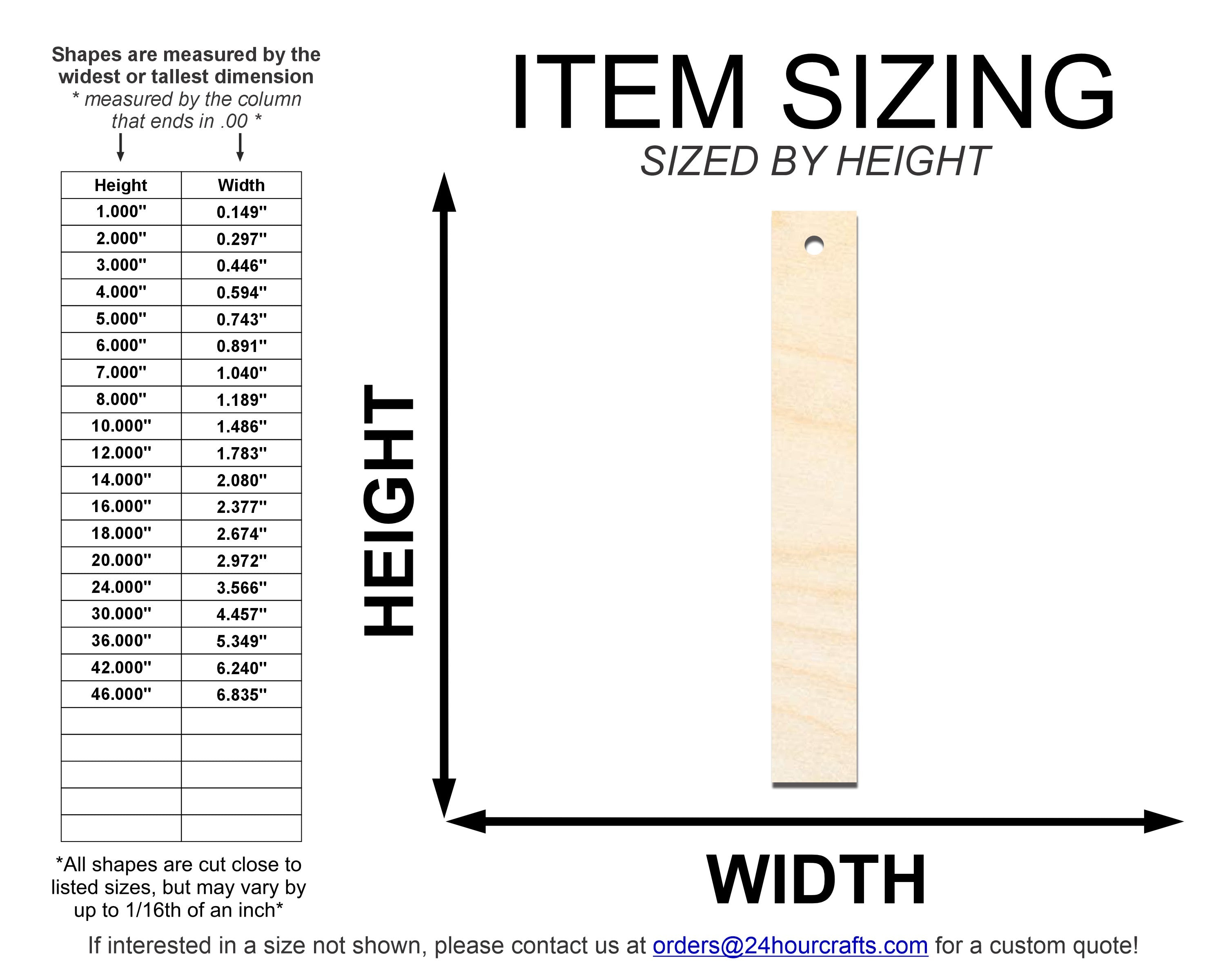 Unfinished Wood Narrow Bookmark Shape | DIY Craft Cutout | up to 12" DIY