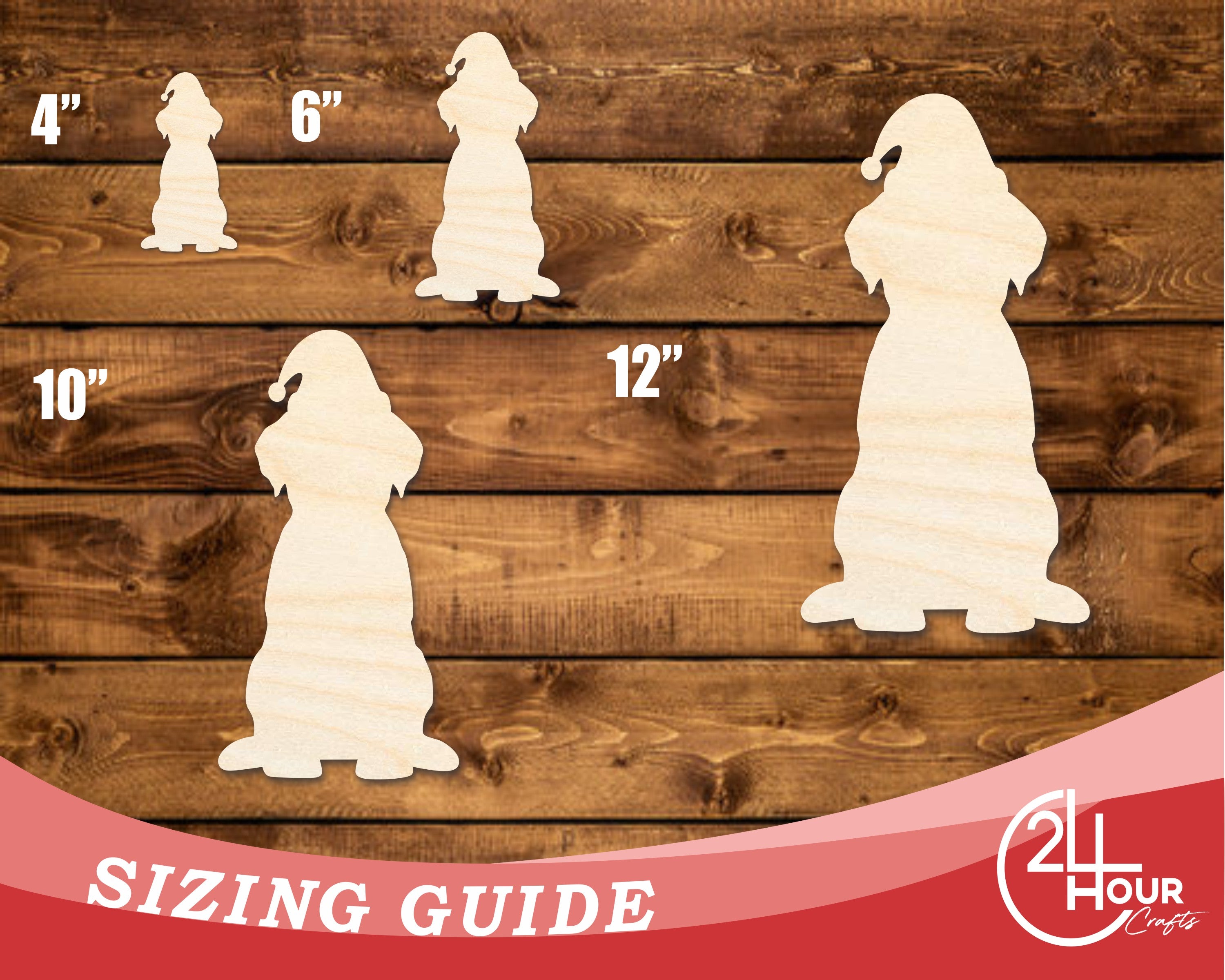 Unfinished Wood Puppy With Santa Hat Shape | DIY Craft Cutout | up to 46" DIY