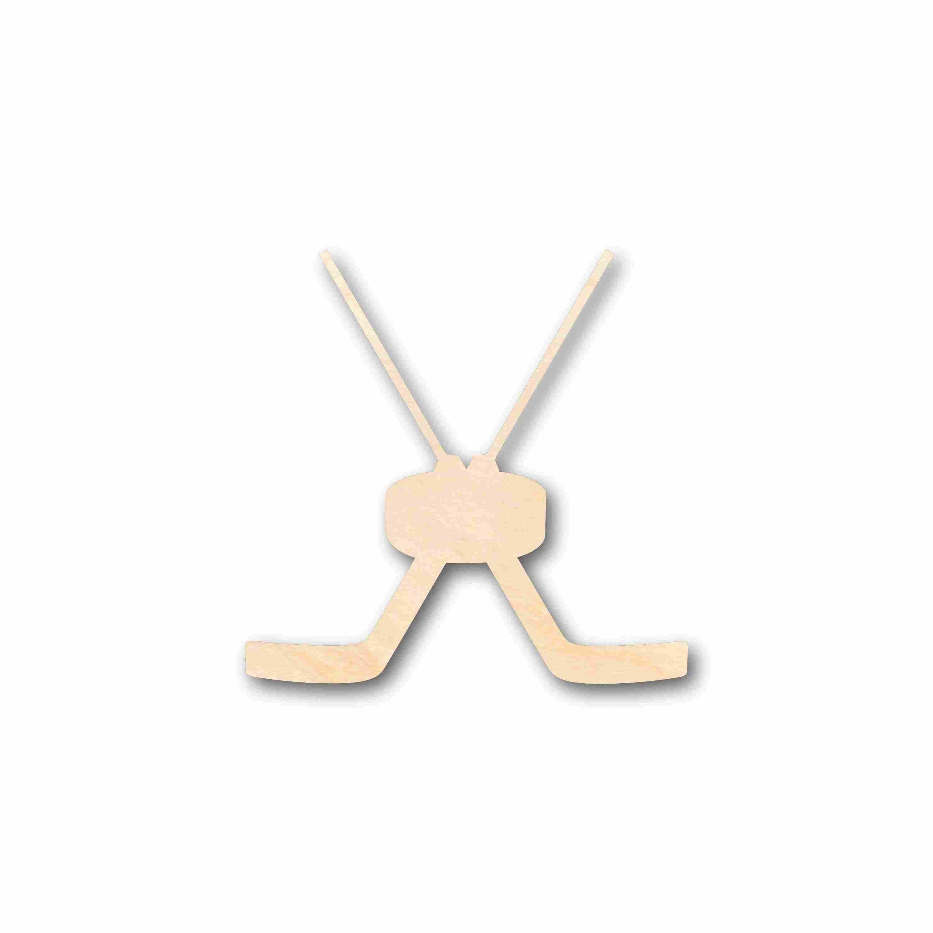 Unfinished Wood Goalie Hockey Sticks Pair with Puck Silhouette - Craft- up to 46" DIY