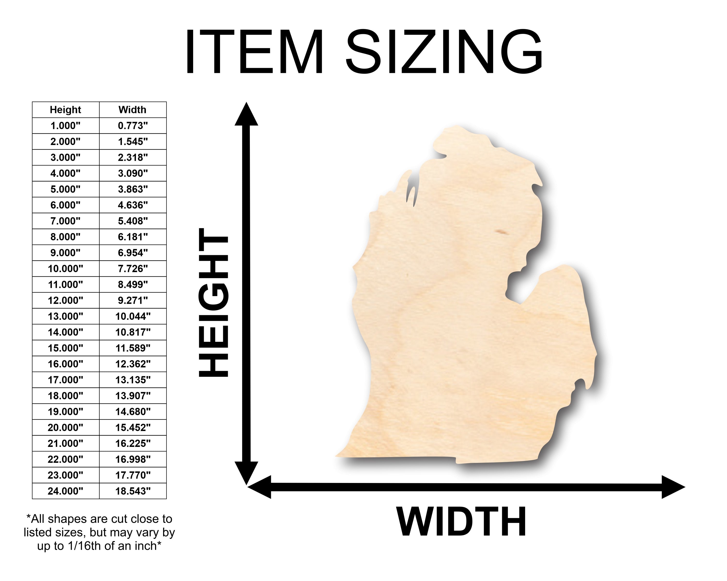 Unfinished Wood Michigan Lower Peninsula Shape - Craft - up to 46" DIY