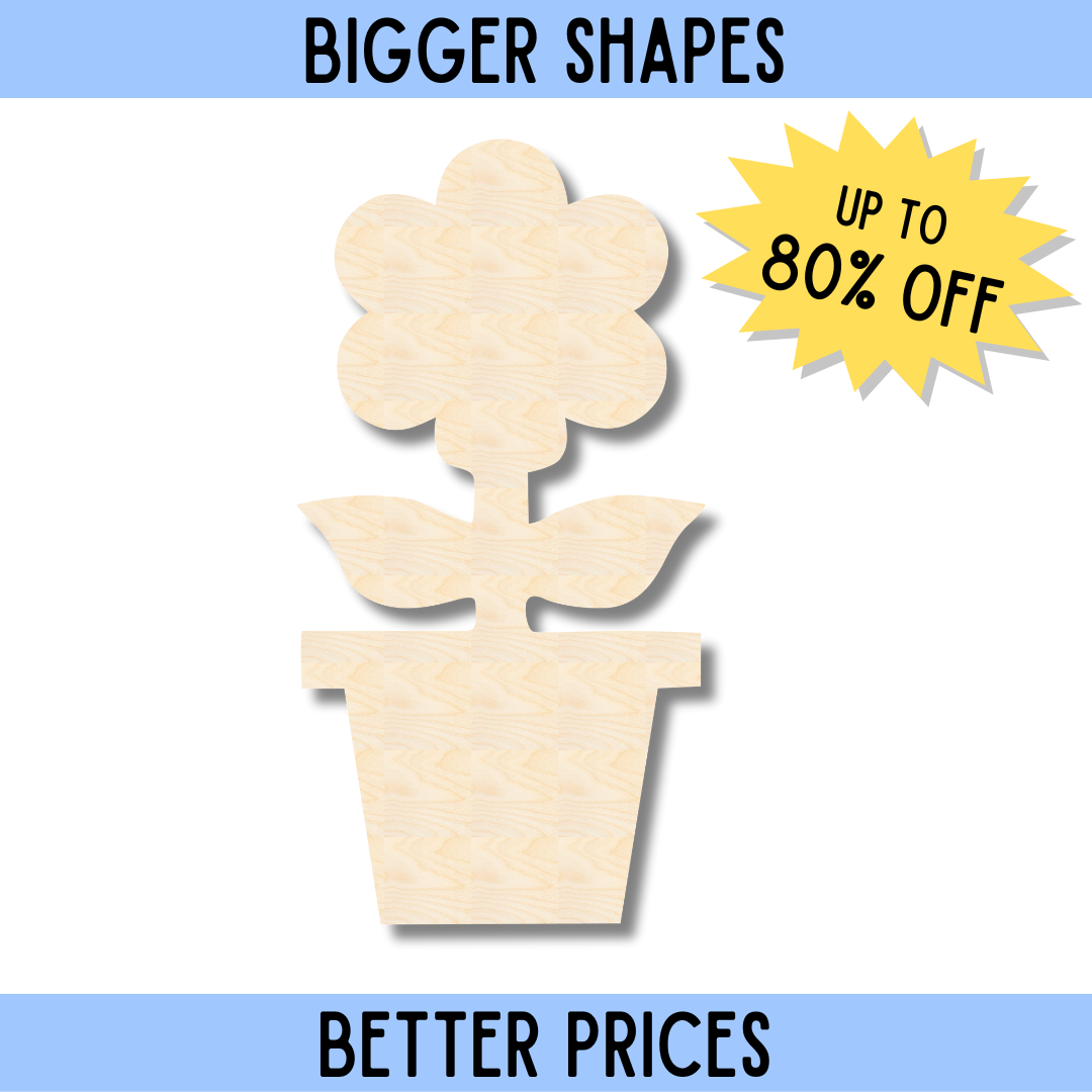 Bigger Better | Unfinished Wood Flower in Pot Silhouette | DIY Craft Cutout |